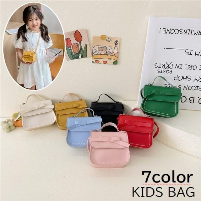 ショルダーバッグ ポシェット キッズ 女の子 子供用 鞄 ミニ 小さめ 斜め掛け 肩掛け 持ち手付き フェイクレザー リボン ホ