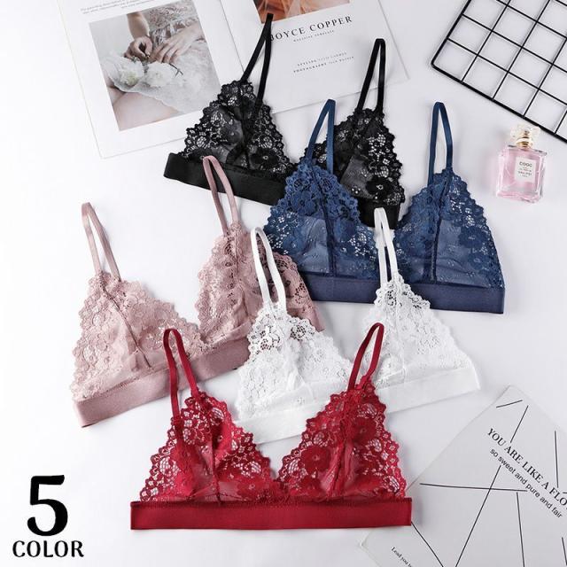 三角ブラ レディース ノンパテッドブラジャー セクシーランジェリー 勝負下着 ノンワイヤー 総レース 花柄 シースルー 美背中