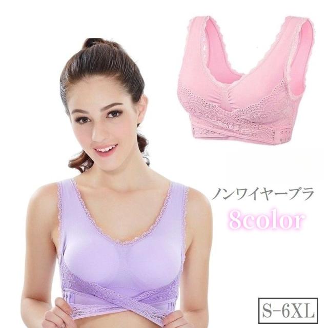 ノンワイヤーブラ ナイトブラ レディース 女性用下着 ブラジャー クロスベルト サイドホック 無地 レース インナー