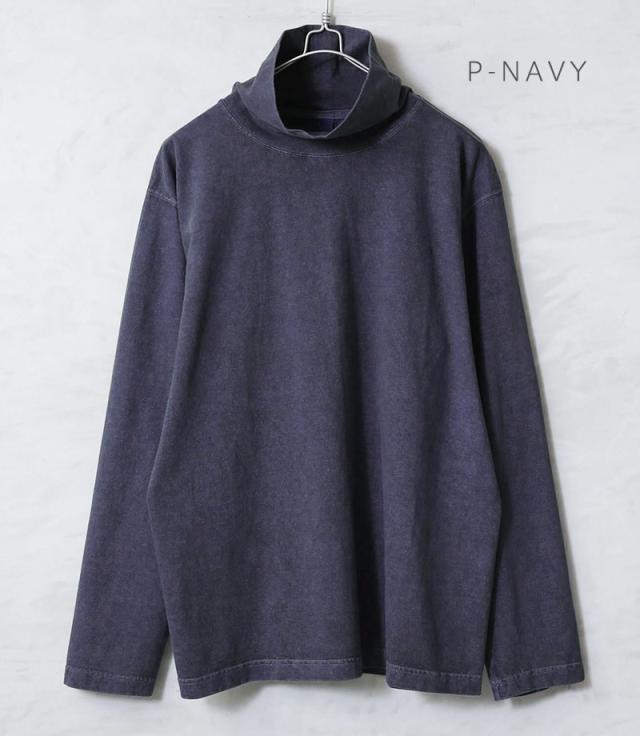 幅広いシーズンで着回しが可能なシンプルでベーシックなタートルネックTシャツです。生地にはゴワつかず重ね着にぴったりの5.5オンスの肌に優しいUSAコットンを使用。染色後の最も縮んだ状態から着用によって生地が馴染んだときにベストなサイズスペックとなるように縮率を計算した独自のパターン。胴体部分を丸胴編みにより筒状に編み上げているため胴周りには縫い目が無く、すっきりとして軽やかな着心地になっています。