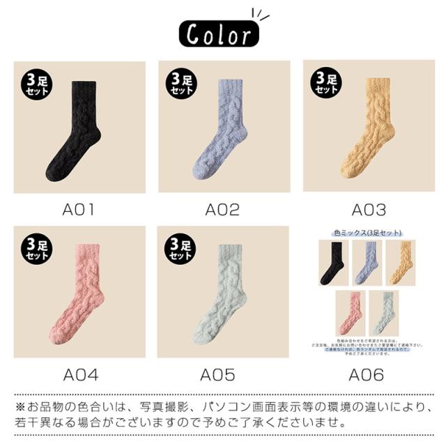 靴下 レディース 3足セット ショットソックス 裏パイル 綿混 吸湿 発熱 ルームソックス カラフル 暖かい 保温 厚手