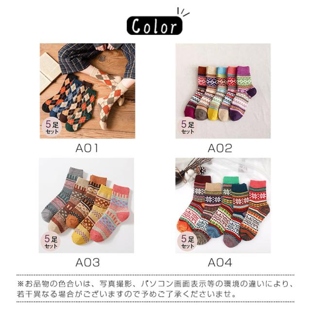 靴下 レディース 5足セット ショットソックス 裏パイル 綿混 吸湿 発熱 ルームソックス カラフル 暖かい 保温 厚手