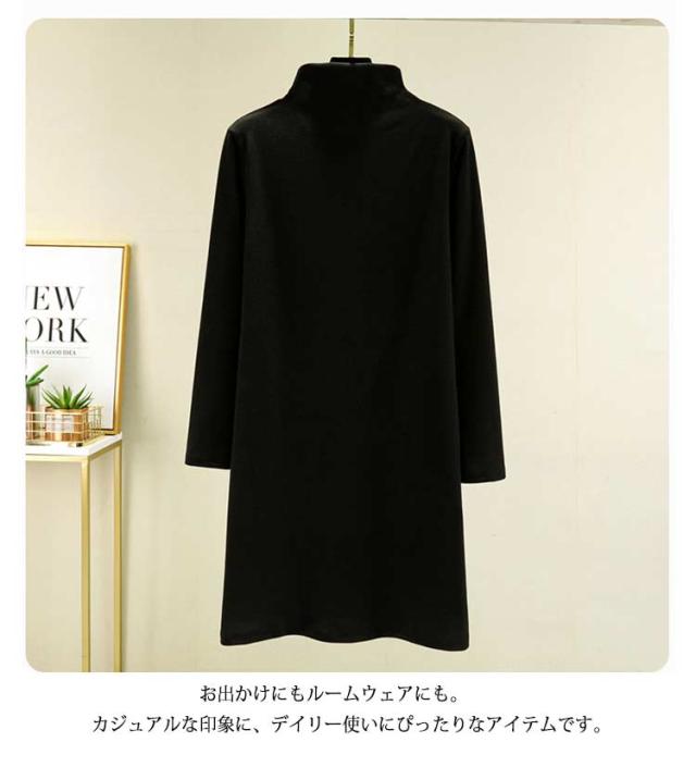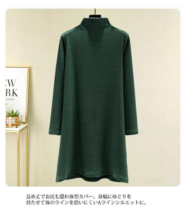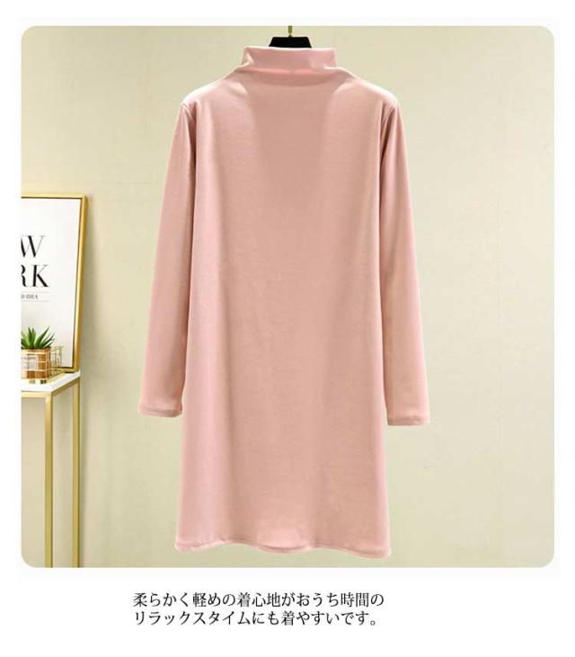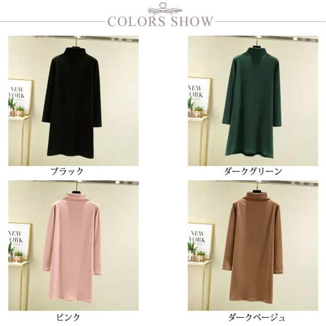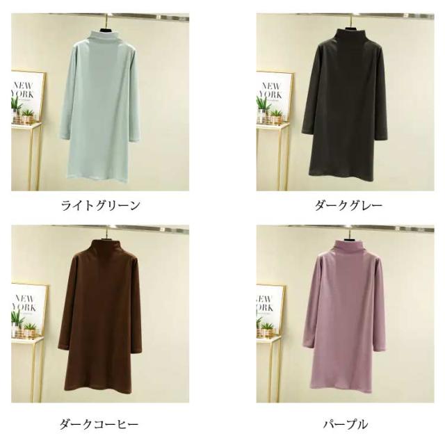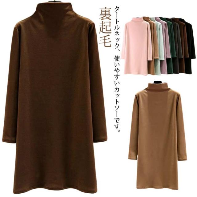 チュニック 長袖 レディース 秋冬 タートルネック ハイネック カットソー 裏起毛 トップス ロング丈 Tシャツ あったかインナー ロングT インナーシャツ 防寒 あったか 暖かい プルオーバー インナー 着痩せ 厚手 体型カバー カジュアル 重ね着 無地 シンプル 送料無料