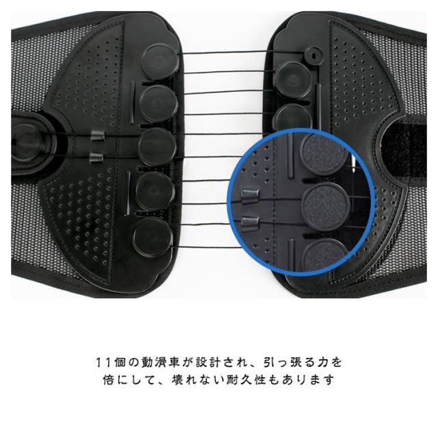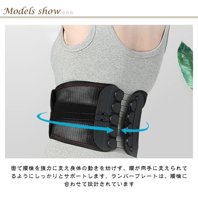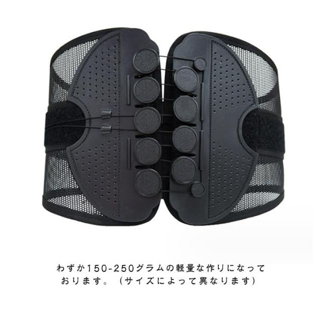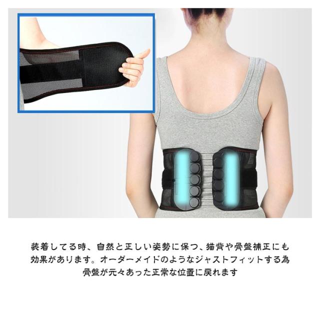 | ヘルニア、背中の筋肉の緊張と捻挫、慢性腰痛、変形性脊椎症、腰痛、骨盤矯正に適応しています。腰痛でお悩みの方に是非お勧め。 面で腰椎を強力に支え身体の動きを妨げず、腰が両手に支えられてるようにしっかりとサポートします。ランバープレートは、腰椎に合わせて設計されています。 装着してる時、自然と正しい姿勢に保つ、猫背や骨盤補正にも効果があります。オーダーメイドのようなジャストフィットする為、骨盤が元々あった正常な位置に戻れます。 11個の動滑車が設計され、引っ張る力を倍にして、壊れない耐久性もあります。 調整レベルの伸縮性が少ない素材を採用され、立ち座りの負荷にも耐える固定性を実現します。 ベルト全体が通気性抜群のポリメッシュ素材を採用され、本体内側に汗を素早く蒸散させます。季節を問わず、一年中使用でき、快適な装着感! したがって、労働保護、日常サポートに適して、座りっぱなし、スポーツ、長時間運転などの場合にも使えます。 わずか150-250グラムの軽量な作りになっております。(サイズによって異なります) | |