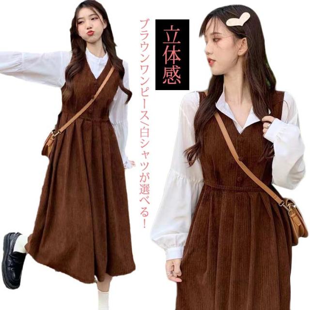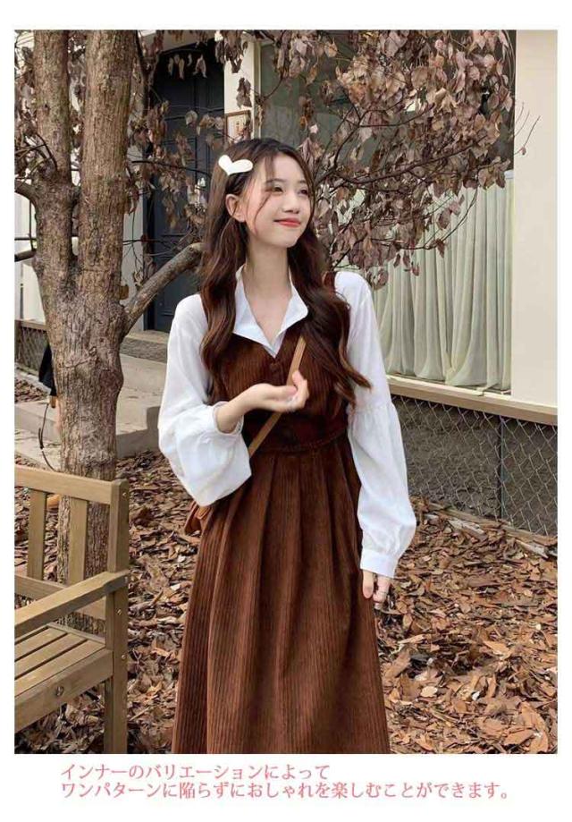 白シャツ 送料無料 上品 セット ロングワンピース 単品 レディース きれいめ コーデュロイ ワンピース サロペット サロペットスカート 秋冬 タンクワンピース ロング 送料無料 ワンピ 重ね着 ジャンパースカート 大人 可愛い 春 秋 冬