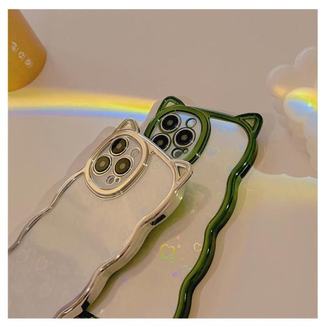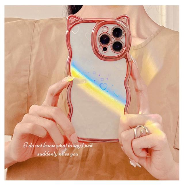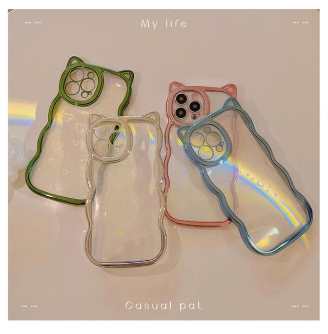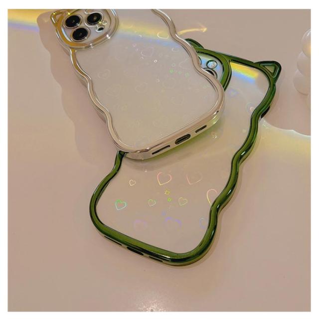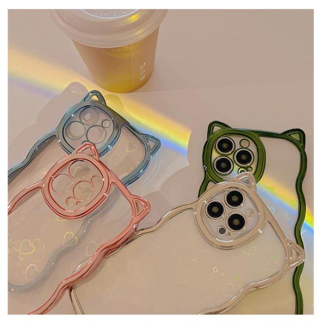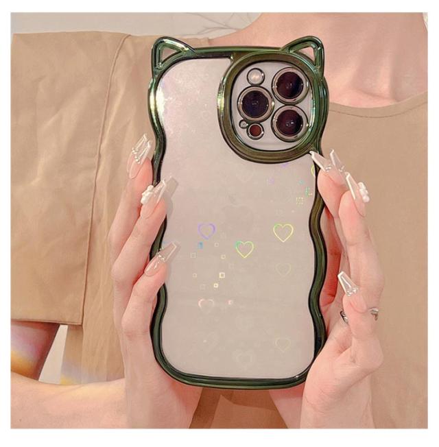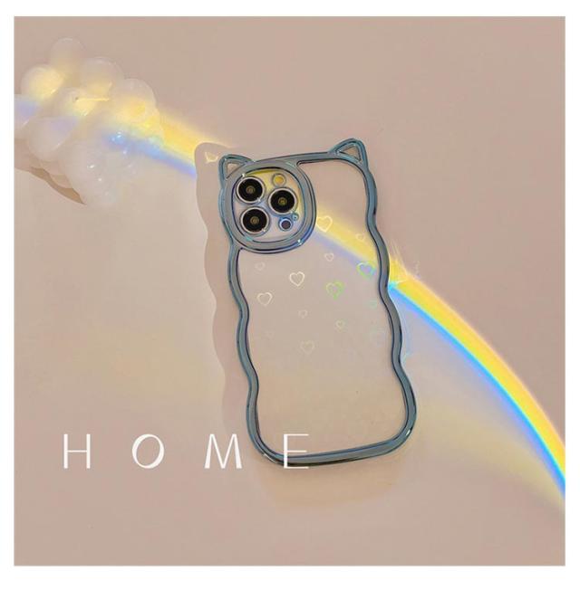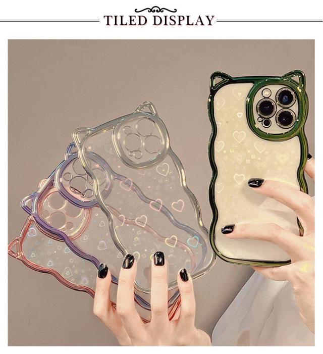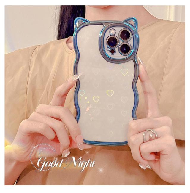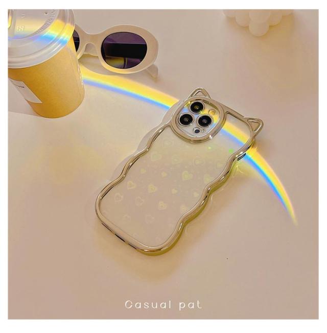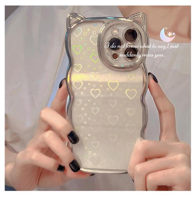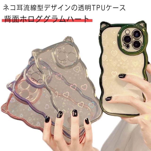 | ネコ耳流線型デザインの透明TPUケース 背面ホロググラムハート | |