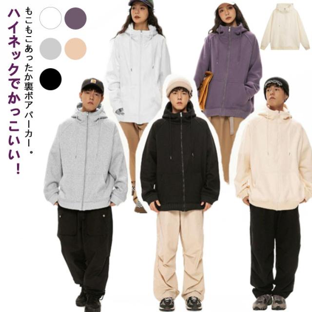 裏ボア ジップパーカー メンズ 激ぬく トレーナー 体型カバー ハイネック ジップアップパーカー アウター 防寒 レディース スエット ボリュームネックパーカー ジップパーカー スウェット フーディーパーカー 秋 ボアパーカー