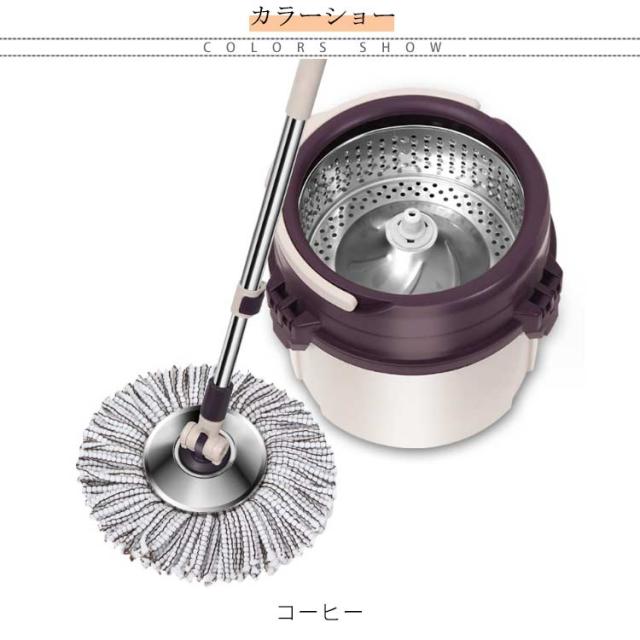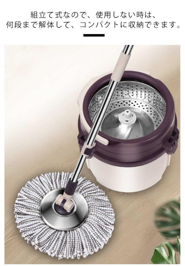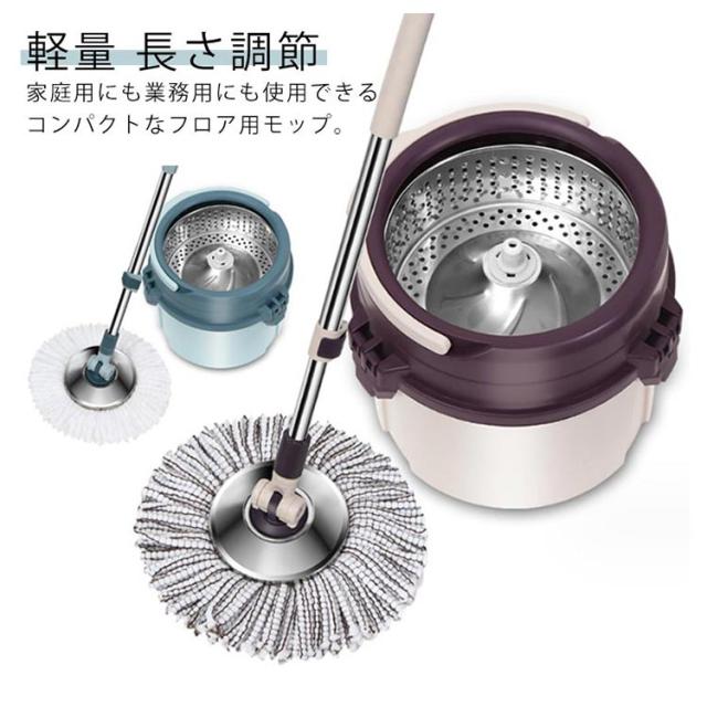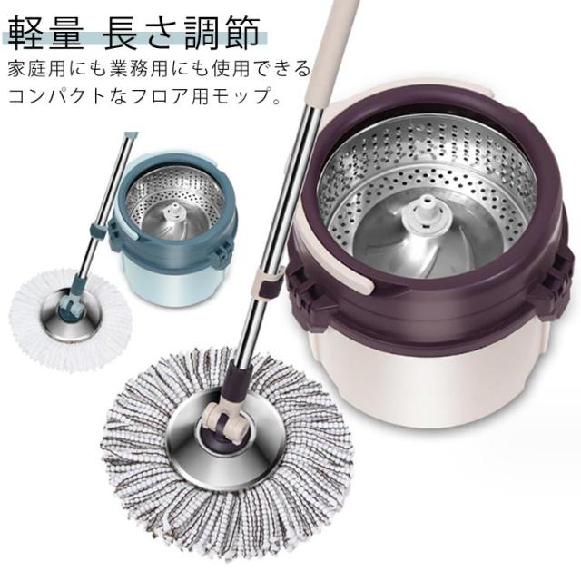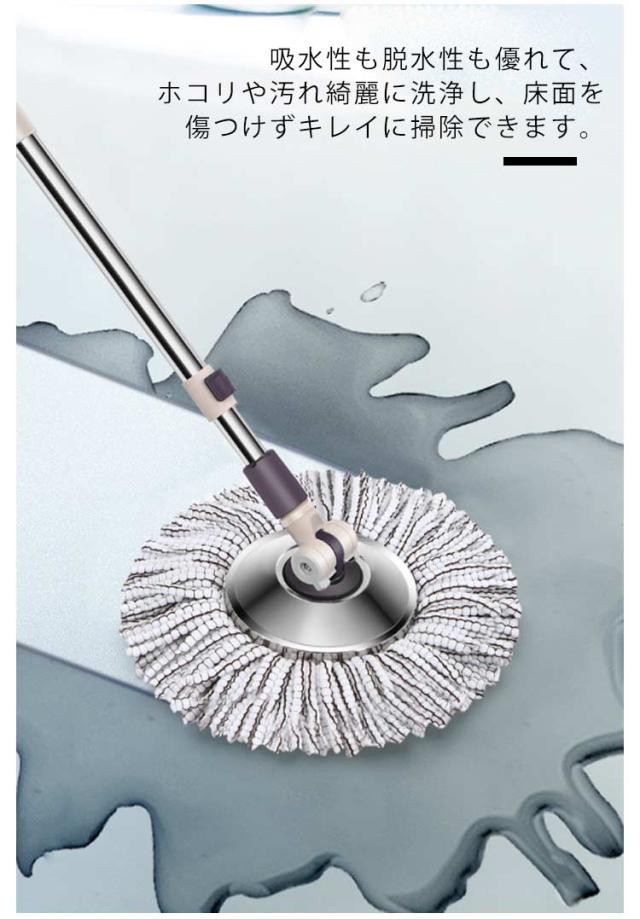 フローリング フロアモップ 乾拭き 回転モップ 交換パッド2枚 バケツ付き 床に優しい 脱水 洗浄 水拭き 掃除用 軽量 長さ調節 モップセット バケツ分解可能 組立簡単 壁掛け