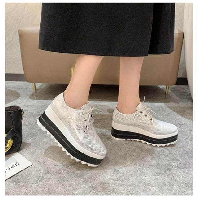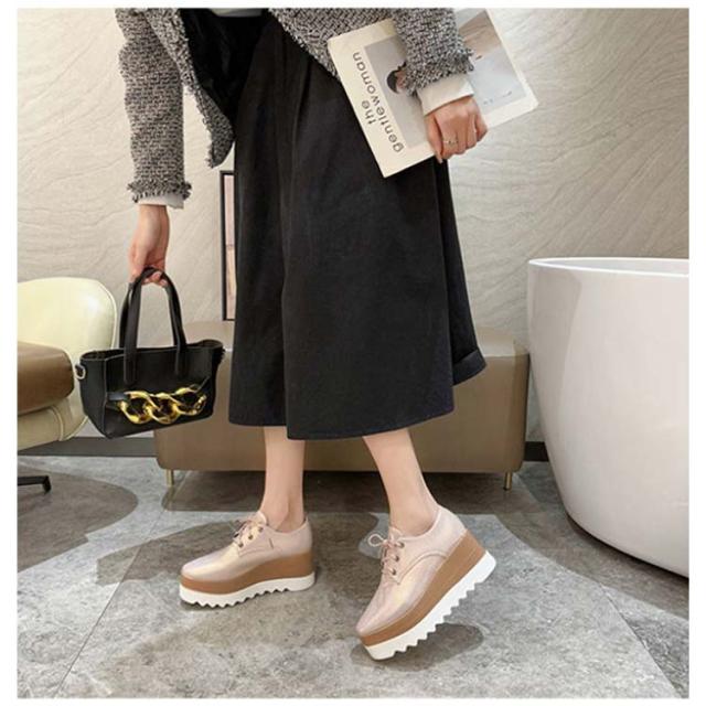 スニーカー レディース 厚底 ウッド レースアップ カジュアル シューズ 冬 マニッシュ 厚底 秋 美脚 大人 ブーツ ウェッジ ウェッジソール 靴 パンプス 歩きやすい 痛くない スムース レザー スニーカー 紐靴 軽量 おしゃれ ブラック ホワイト ピンク