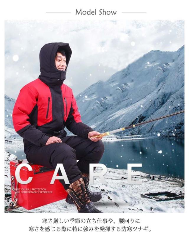 | 【防風】【防水】【防寒】寒い冬を乗り切るためのマストツナギ 寒さ厳しい季節の立ち仕事や、腰回りに寒さを感じる際に特に強みを発揮する防寒ツナギ。 中綿入りでポカポカ!ポリエステルを使用することで丈夫で軽く、温かい素材に 両胸のファスナーポケット フロントはダブルファスナー、後ろ腰部分はファスナー仕様で脱ぎ着しやすいです オンオフ問わず、ウインターキャンプに釣り、バイクでの移動時など使い方の多様性が高いのも特徴。 釣り・ウィンターキャンプ・バイク・子供との雪遊びなど、幅広い用途に大活躍まちがいなし! 本当に暖かいのでおススメしたい商品です! | |