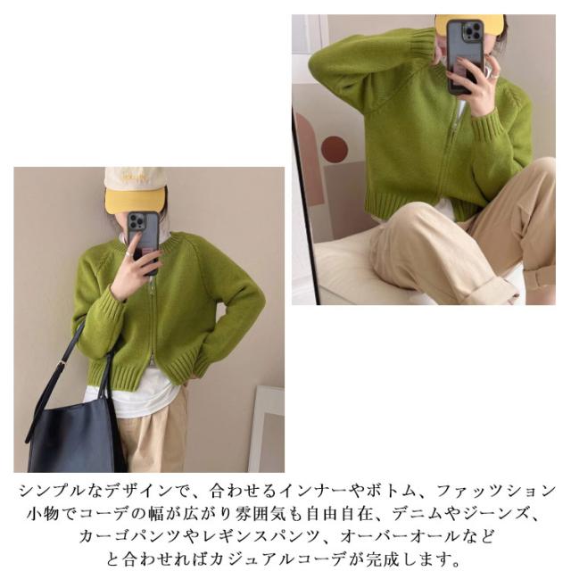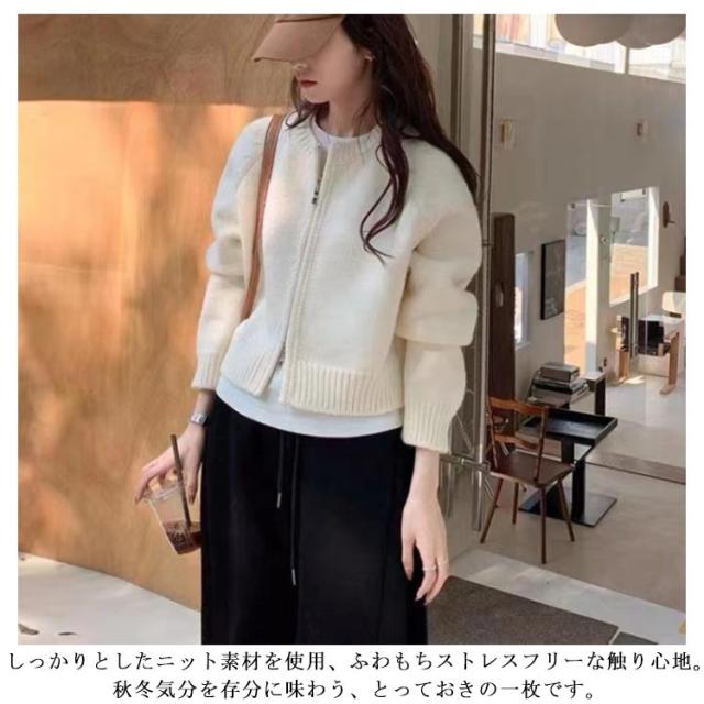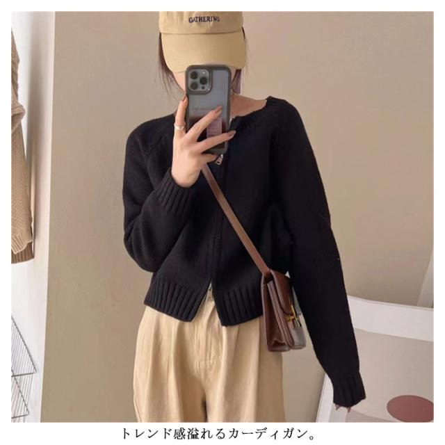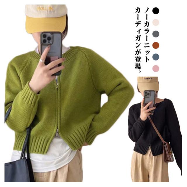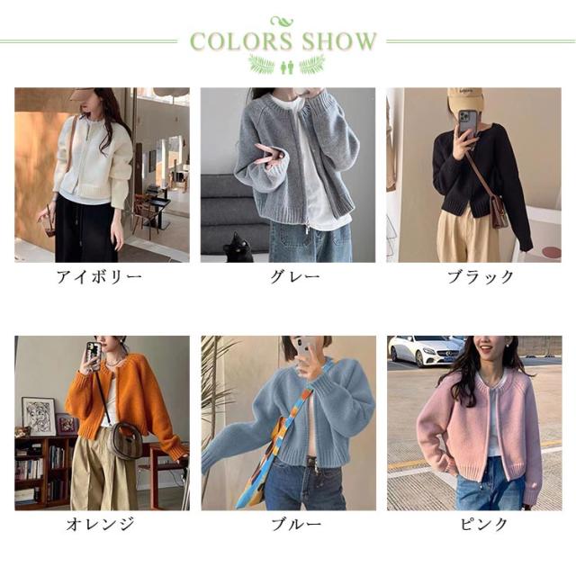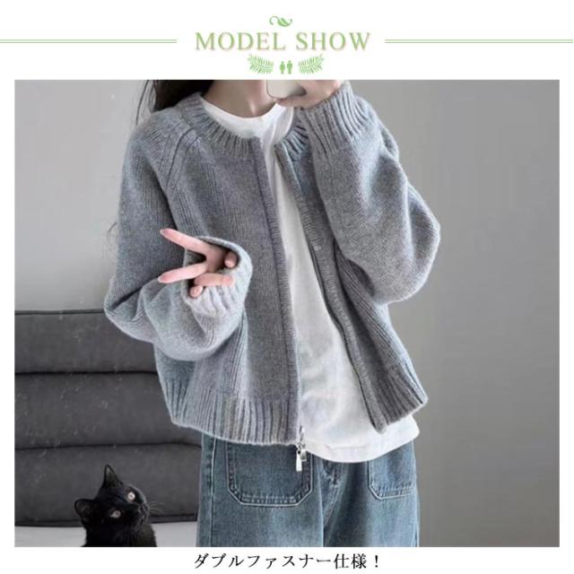 レディース ニットカーディガン カーディガン 羽織り ノーカラー 秋冬 厚手 トップス ショート ニットコート ジップアップ ニット ダブルファスナー ニットセーター アウター リブニット ニットカーディガン ゆったり カジュアル きれいめ