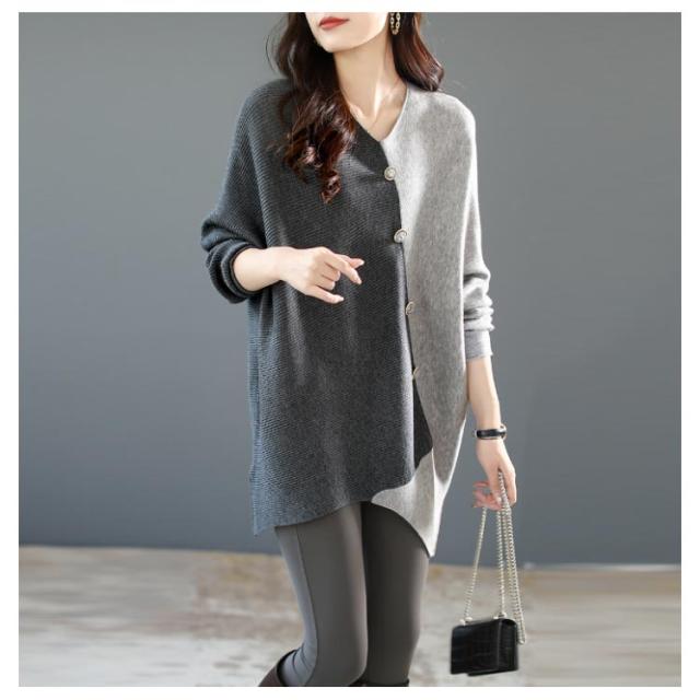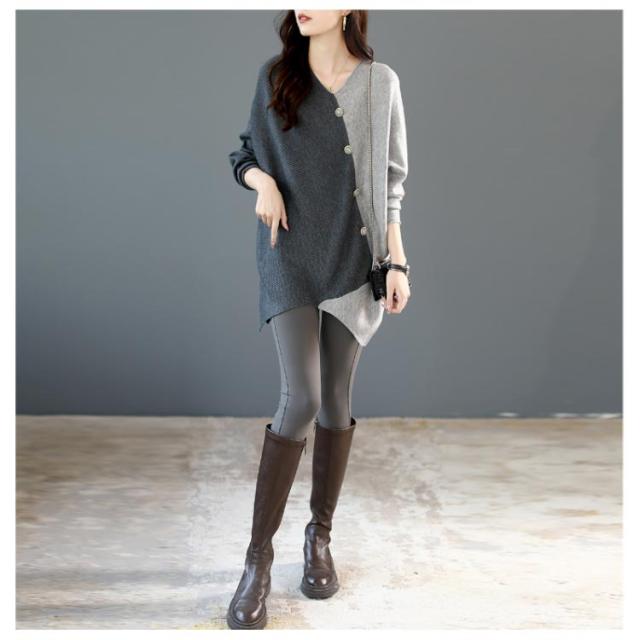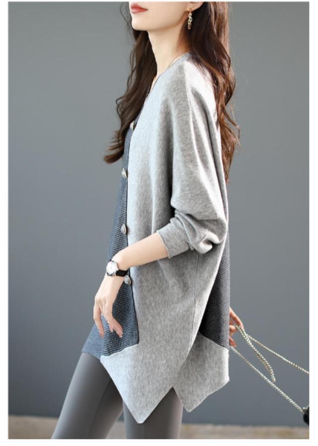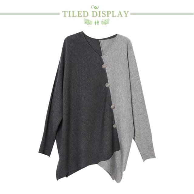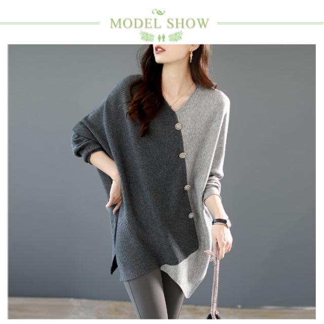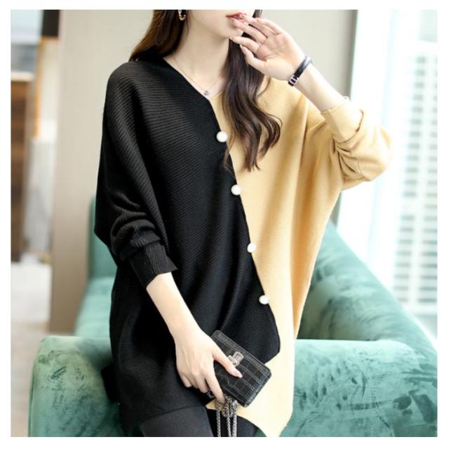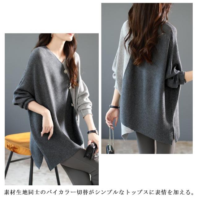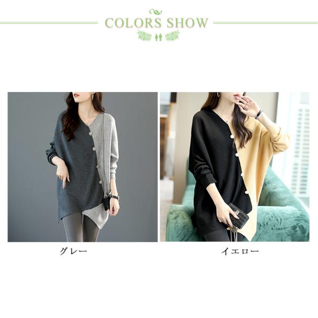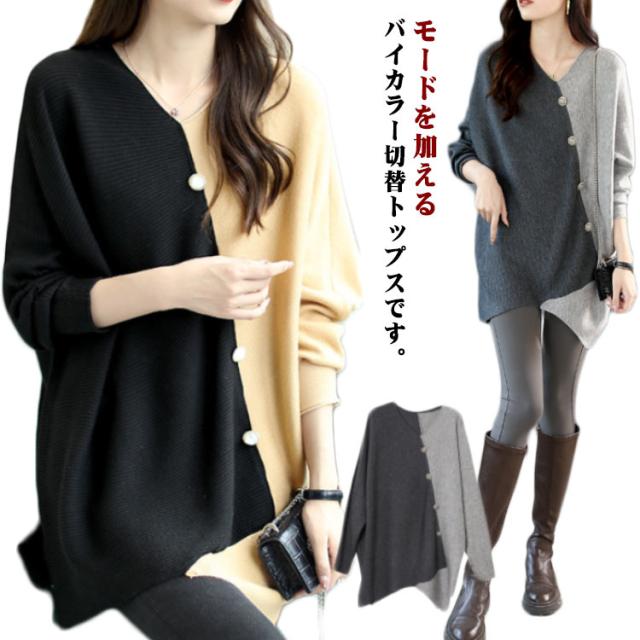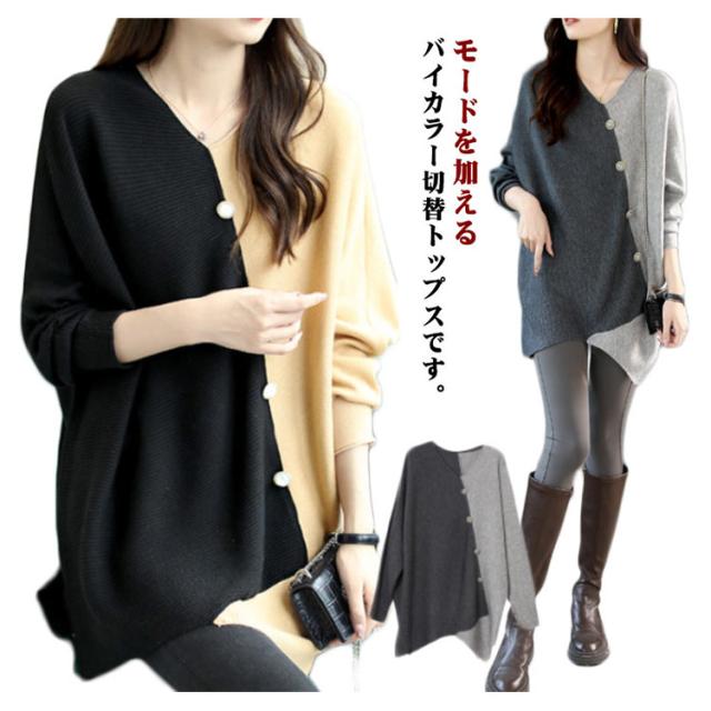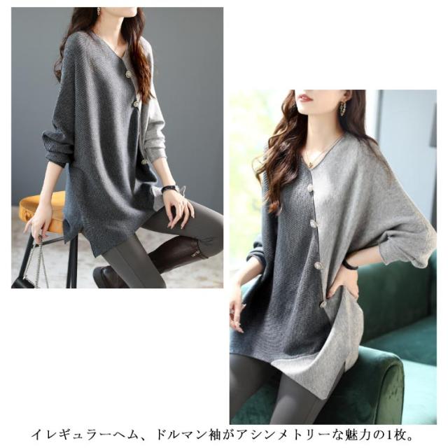 ニット vネック アシンメトリー レディース 秋冬 アシンメトリー ボタン ゆったり ファッション レディース 秋 セーター 配色 長袖 ドルマンスリーブ 冬 プルオーバー 薄手 ニット セーター ニットセーター 着?せ トップス カジュアル 30代 40代