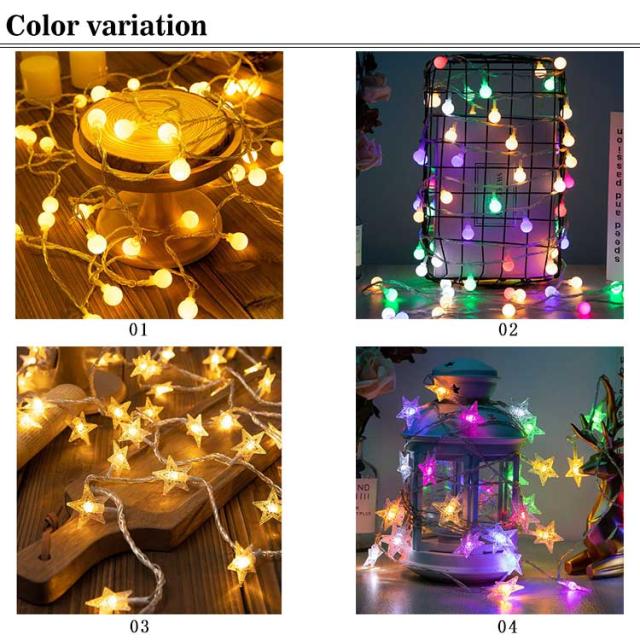 | サイズについての説明 | F:サイズ:全長約3m 電球数:20個 接続:4.5V |
