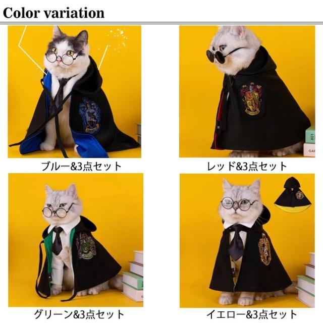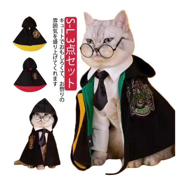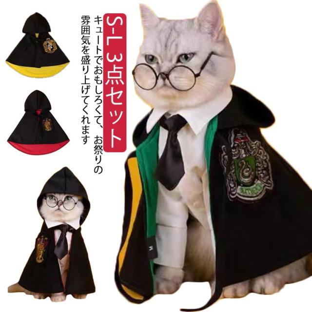ペット仮装 ハロウィン 猫 マント 小型犬 クリスマス 3点セット 変装 猫服 犬服 コスチューム メガネ ネクタイ ペット服 コスプレ衣装 ペットの仮装服 中型犬 可愛い 3点セット 猫犬ペット装飾 魔法使い パーティー 女の子 男の子 お散歩 お出かけ ペット洋服
