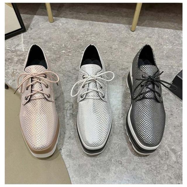 | 22.5-26.0cm!厚底で美脚効果☆ウッド調の切り替えで凝ったデザインシューズ すっきりしたスニーカーデザインが女性らしい印象です。 安定感のあるぺたんこなのでデイリーユースにぴったりです。 定番のオックスフォードに厚底ソールをプラス。 シンプルながら履くだけでトレンド感たっぷりなスタイルに。 細身なデザインなので、重くなりがちの足元もすっきりスタイリッシュに決まります。 | |