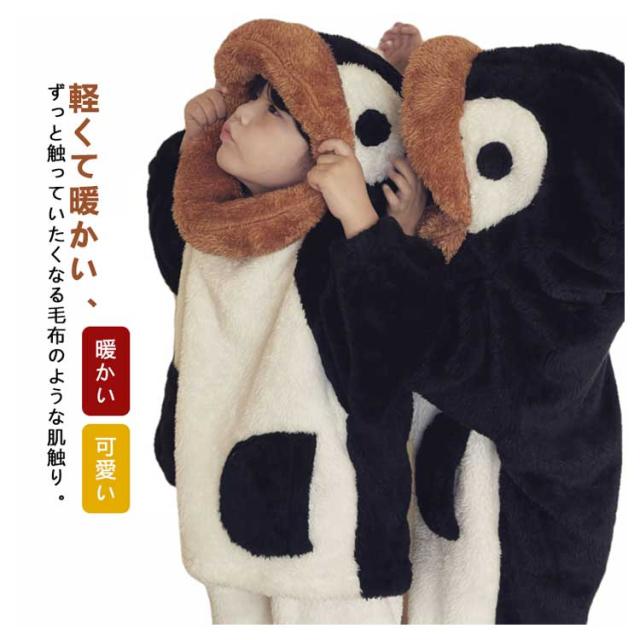 着る毛布 可愛い 上下セット 防寒 キッズ リラックスウェア ジュニア 部屋着 ナイトウェア 着ぐるみ 仮装 ルームウェア ペンギン 暖かい 子供用 ワンピース 長袖 ベビー服 着る毛布 年賀状 写真撮影