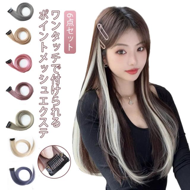 ワンタッチ カラー 6点セット ウィッグ クリップ ヘア 部分ウィッグ 緑 エクステ つけ毛 ロング 水色 エクステンション ピンク 子供 ヘアアクササリー おしゃれ ダンス衣装 ヒップホップ 発表会 キッズ ダンス メッシュ