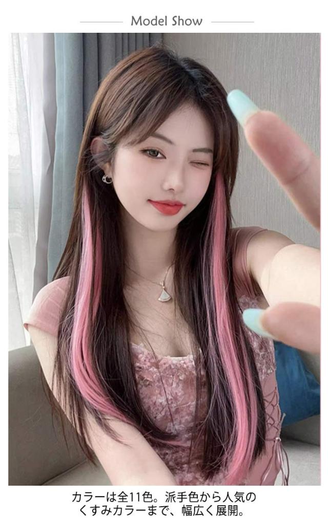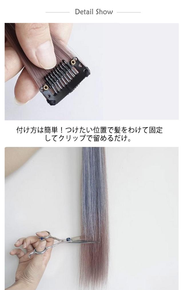| ワンタッチで付けられるポイントメッシュエクステ 付け方は簡単!つけたい位置で髪をわけて固定してクリップで留めるだけ。 カラーは全11色。派手色から人気のくすみカラーまで、幅広く展開。 | |