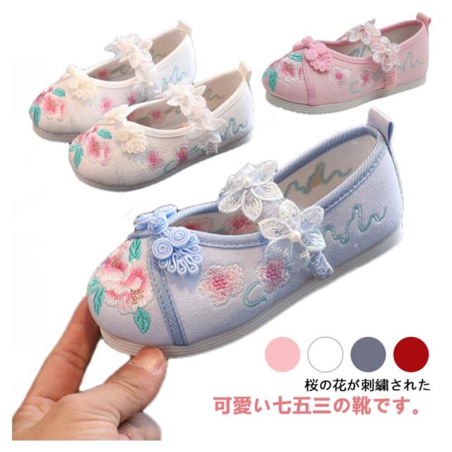 軽量 キッズ 七五三 着物 赤 桜の刺繍 歩きやすい 痛くない草履 女の子 草履 履物 子供靴 桜の花 桜柄 こども チャイナ靴 ピンク 履きやすい 靴 ベビー キッズ お正月 ひな祭り 和装 和服 シューズ 七五三 バレエ靴 唐装 漢服 発表会 結婚式