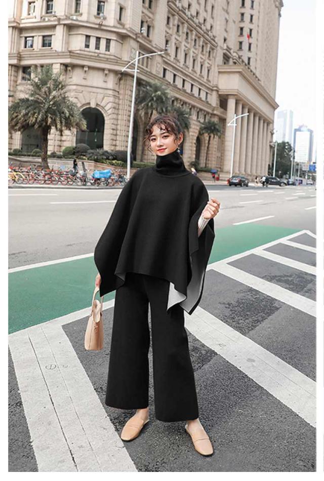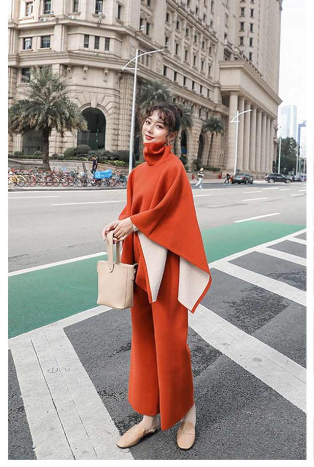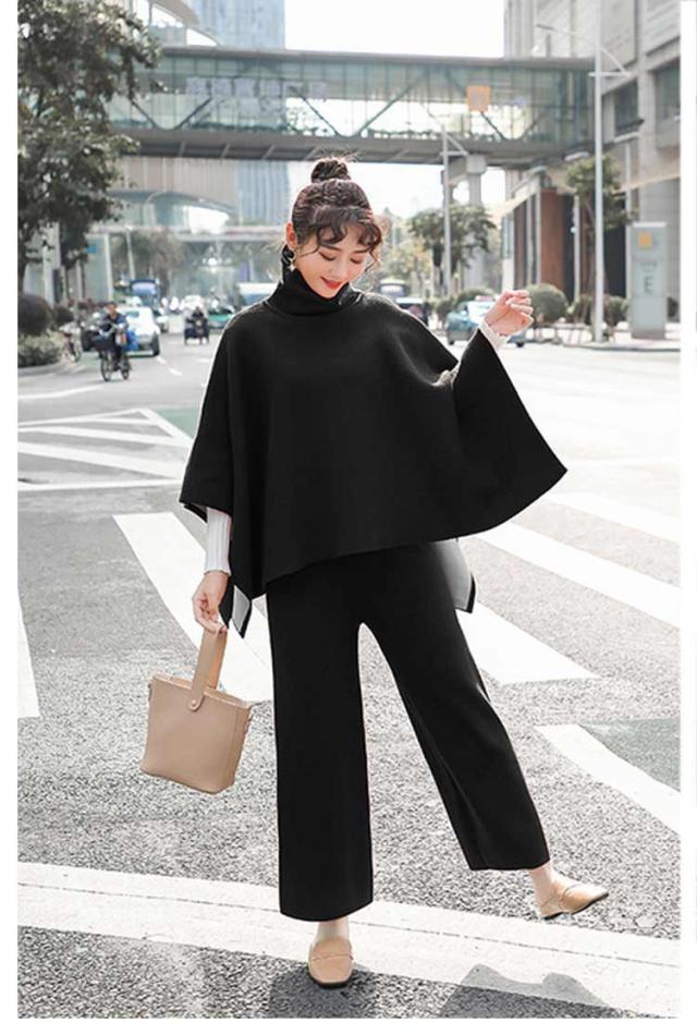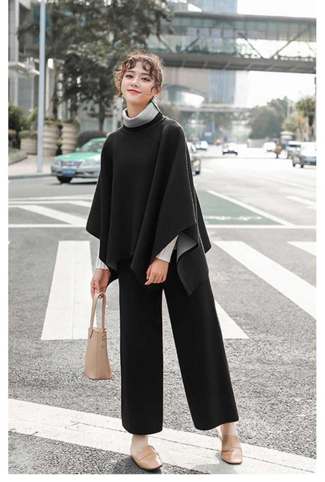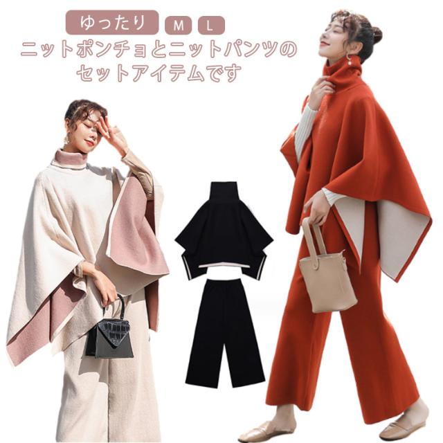 ニット セットアップ レディース ワンピース かわいい セットアップ カジュアル おしゃれ きれい 秋冬 可愛い 大人可愛い セットアップ 綺麗 レディース キレイめ 体型カバー 長袖 ゆったり セットアップ ポンチョ ハイネック