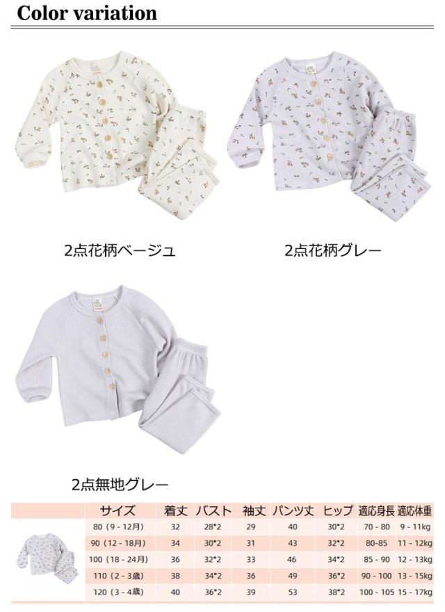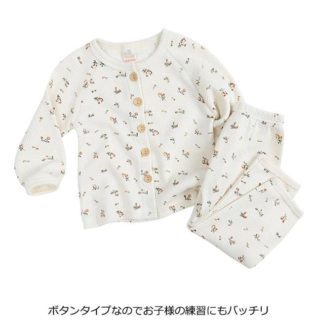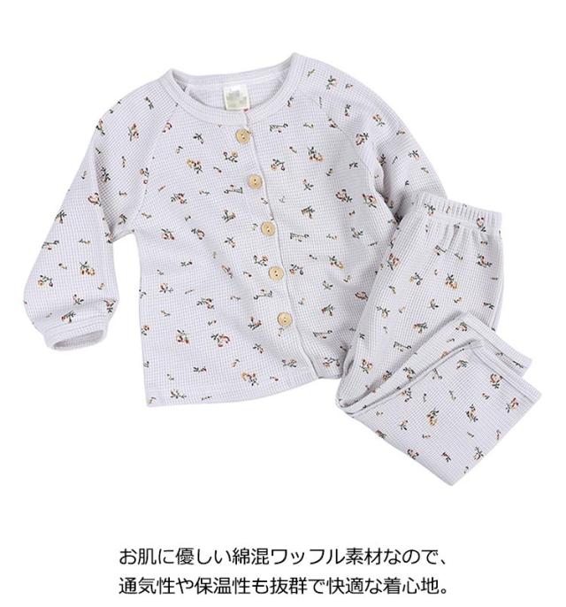 | 肌に優しい綿混素材 80cm 90cm 100cm 110cm 120cm ナチュラルで優しい色合いのワッフル長袖パジャマ ボタンタイプなのでお子様の練習にもバッチリ ウエストはよく伸びるゴム仕様 高伸縮でゆったり着用 お肌に優しい綿混ワッフル素材なので、通気性や保温性も抜群で快適な着心地 | |