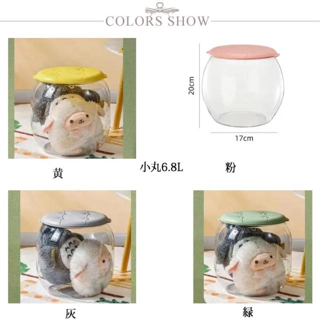 蓋付き スツール ぬいぐるみ収納 ディスプレイケース コレクションケース スツール 収納ケース 透明 収納 おもちゃ収納ボック 円柱形 防塵 DIY 持ち手 展示ボックス クリア 透明 子供部屋 玄関収納