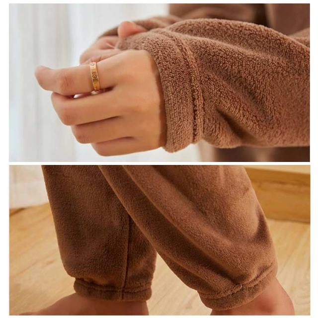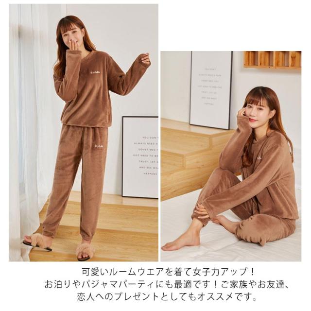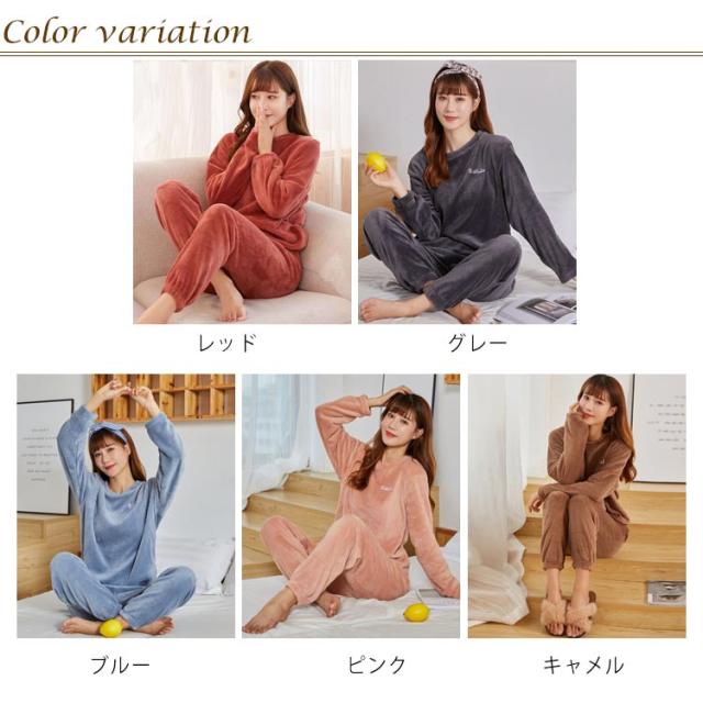 秋冬 パジャマ レディース 暖かい モコモコ 長袖 起毛 ルームウェア 寝巻き パジャマ 無地 防寒 上下セット かわいい 厚手パジャマ