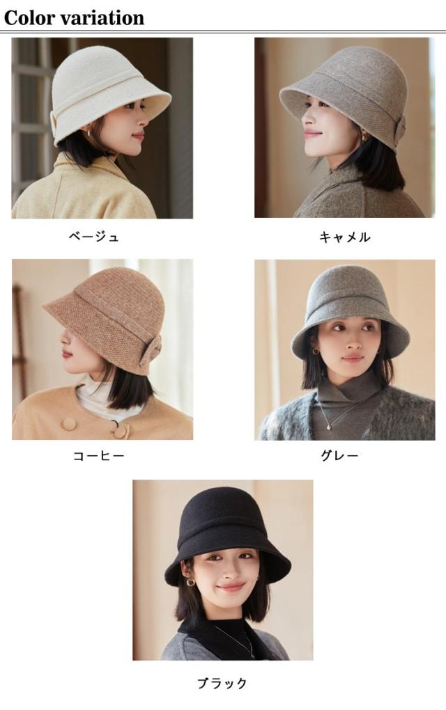 | 上質感が溢れるレディースバケットハット 【エレガントなデザイン】このバケットハットの最大の特徴は、後ろのリボンのデザインです。女性の可愛らしさと上品さを存分に表現したリボンです。 【つば広デザイン】つばが広いので、防風防寒だけでなくファッション性もアップし、小顔効果も抜群です。 いろいろなシーンに使えるから実用的です! 【クラシックなカラー】秋冬らしいコーディネートをさらに引き立ててくれる、秋冬らしい定番カラーをご用意しました。キャメルやブラックなどのコートとも相性抜群です。 | |