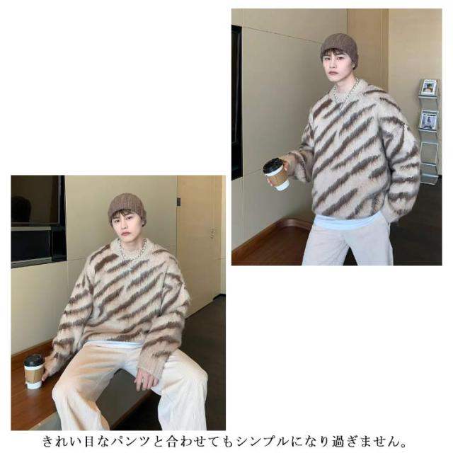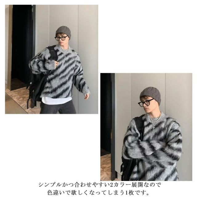 冬服 セーター メンズ シャギーニット 長袖 秋服 ニット トップス オーバーサイズ 大きなサイズ ビッグシルエット あったか ふんわり ドロップショルダー 男性 カジュアル 韓国