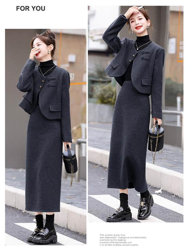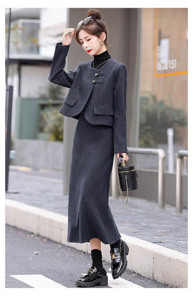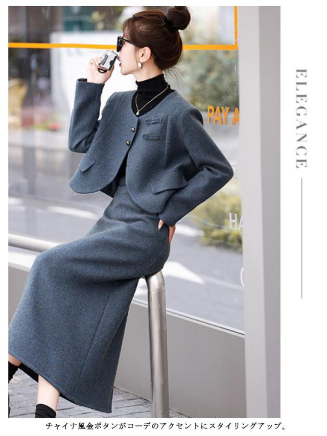 | 他には見つかない新鮮なスカートスーツセットアップ。 絶妙なコンパクトな丈のジャケットと腰高見えなロングスカートで、縦ラインを強調し、脚長効果抜群! チャイナ風金ボタンがコーデのアクセントにスタイリングアップ。 秋から春先まで大活躍起毛させた厚手の生地はとても丈夫で保温性も高いため、これからの寒い季節はピッタリのセットアップです。 入学式、卒業式、入園式、卒園式、結婚式、二次会、お呼ばれ、パーティー、クリスマスやお正月のご挨拶、参観日や学校行事、お子様の大切な記念日ともなる、七五三やお宮参りにもお使い頂けます。 | |