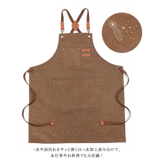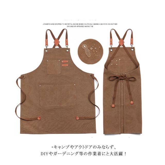 厚手 エプロン 撥水 メンズ キャンバス 肩かけ エプロン ワークエプロン レディース フリーサイズ カフェエプロン 作業用 職人 DIY アウトドア キャンプ ガーデニング 庭 保育士 中学生