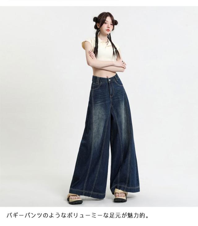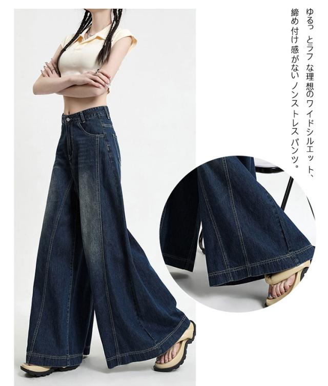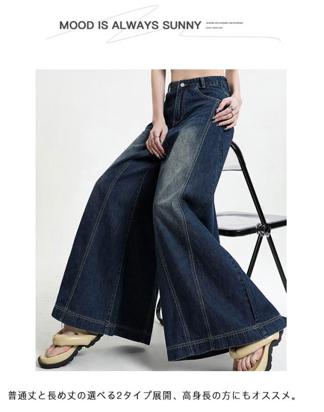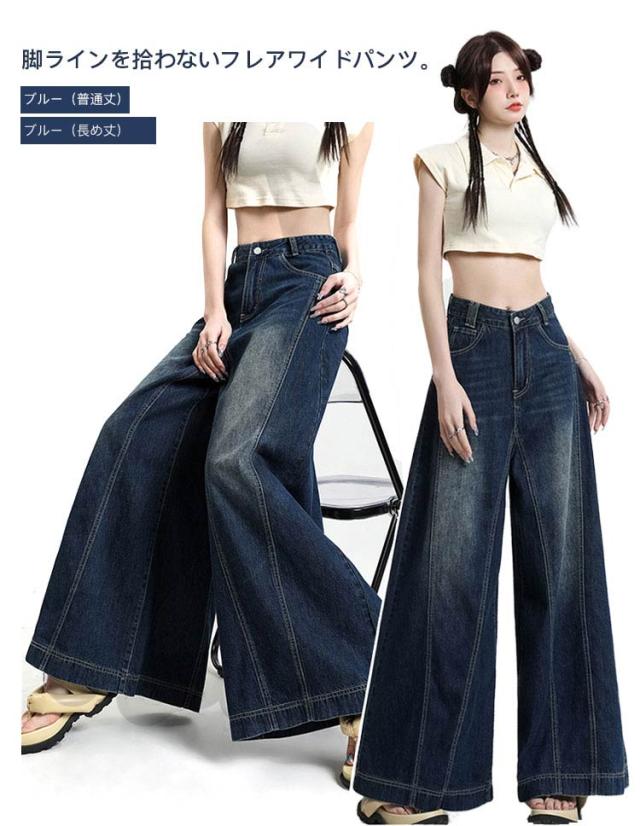レディース ロングパンツ デニムパンツ ワイドパンツ 送料無料 ジーンズ 長め バギーパンツ フレアパンツ 大きいサイズ ブーツカットパンツ ワイドパンツ ジーパン カジュアル ストリート オールシーズン 着回し ガウチョ ガウチョデニム
