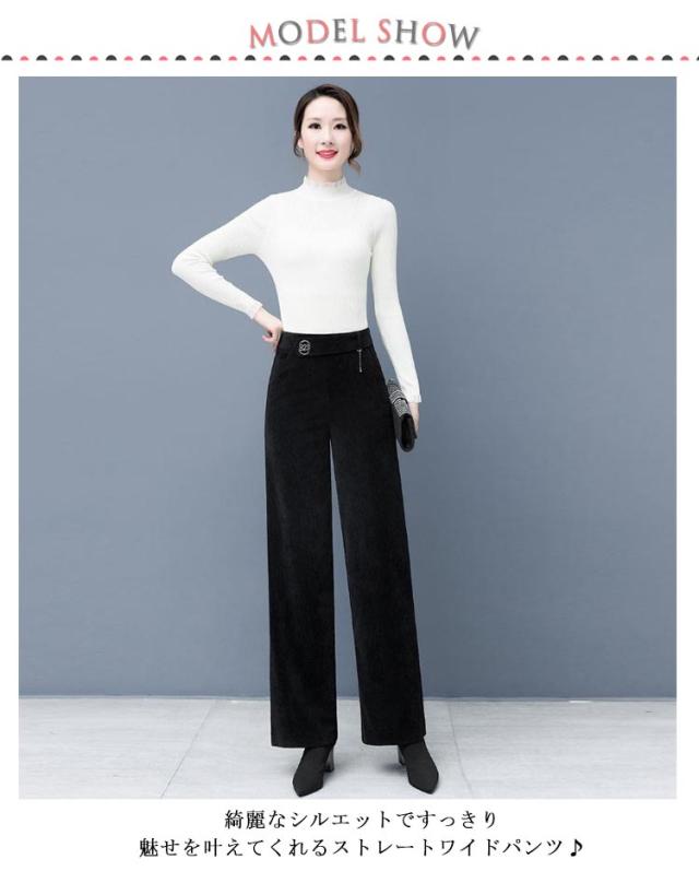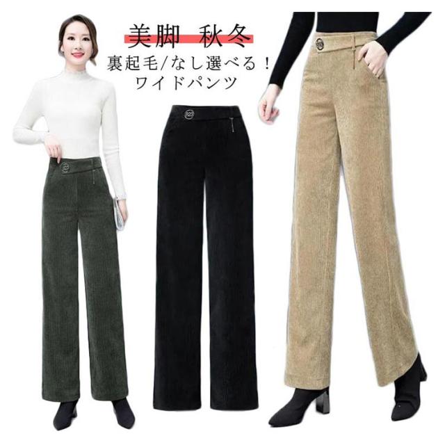 大きいサイズ ストレートパンツ ロング 通勤 ロングパンツ ウエストゴム 裏起毛/なし選べる!ワイドパンツ 裏起毛/なし選べる!ワイドパンツ ゆったり 秋 冬 ボトムス 暖かい 長ズボン 美脚 30代 40代