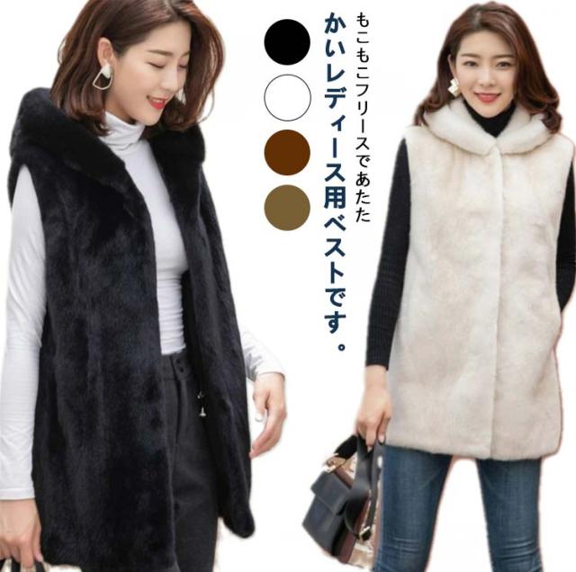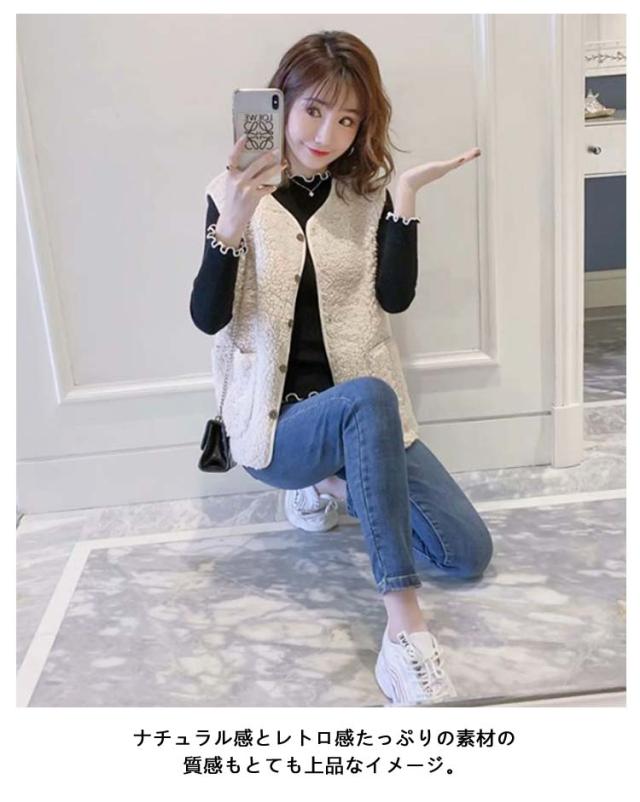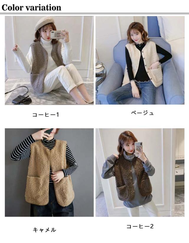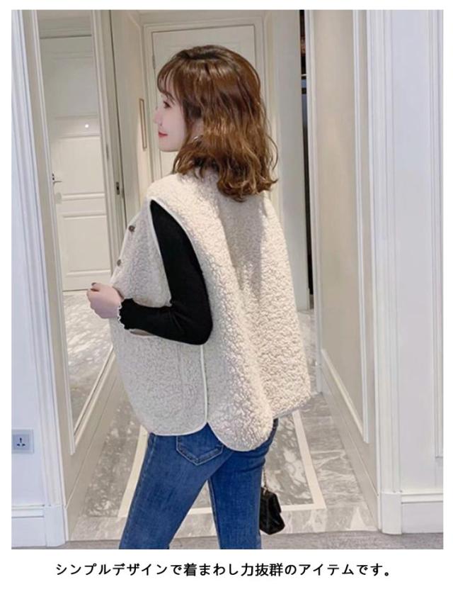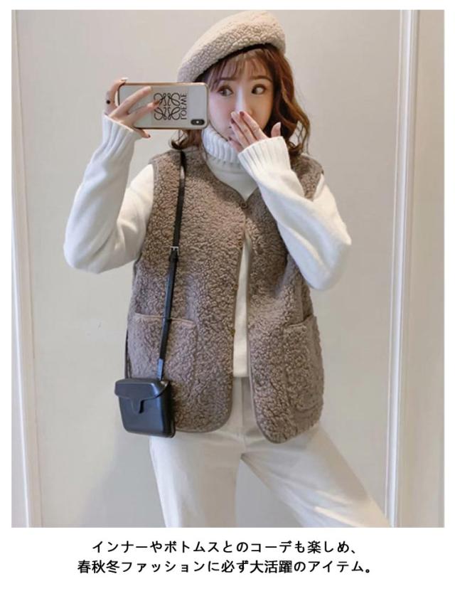 ベスト トレンド ベスト レディース トップス 秋冬 前開き ボア 秋 アウター 冬 ポケット付き ベスト ジレ ボアベスト ムートン調 ノーカラー ノースリーブ おしゃれ きれいめ