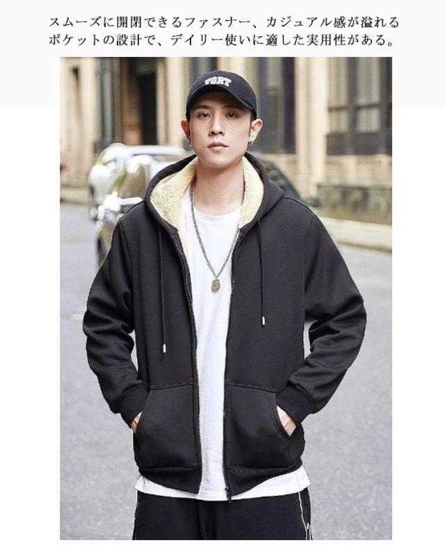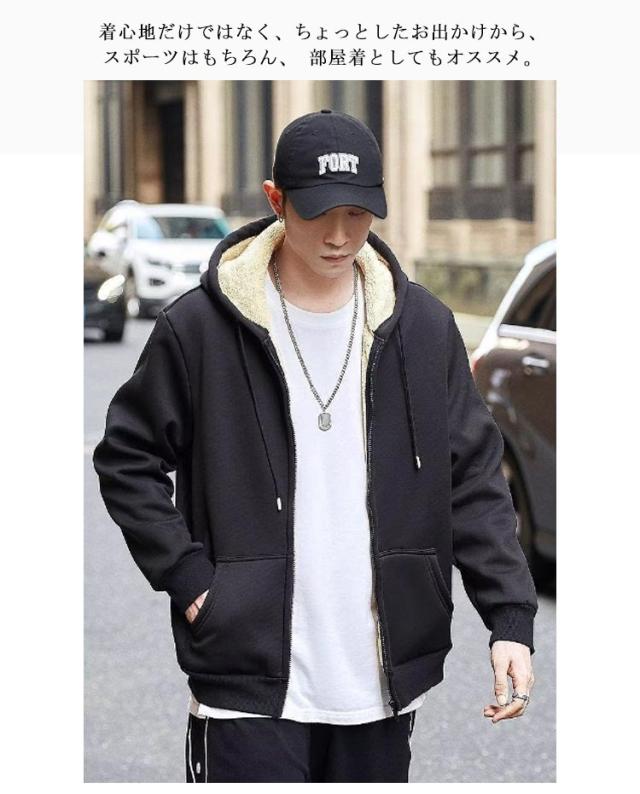パーカー メンズ ジップアップ 裏ボア付きパーカー ジャケット アウター 着こなし スポーツ 暖かい 秋冬 防風 無地 フーディー フルジップパーカー 厚手 メンズファッション