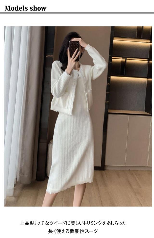 | 2点セット 上品&リッチなツイードに美しいトリミングをあしらった長く使える機能性スーツ 派手過ぎず、美しく、上品に。 シンプル&だけど、しっかりこだわったデザインです。 | |