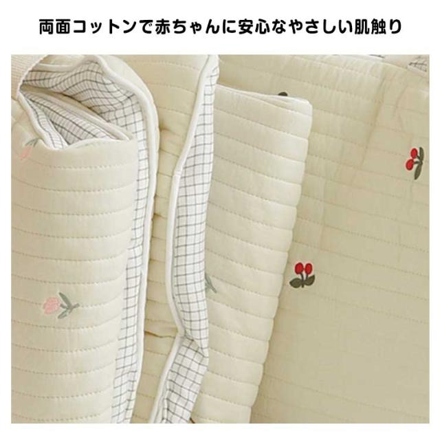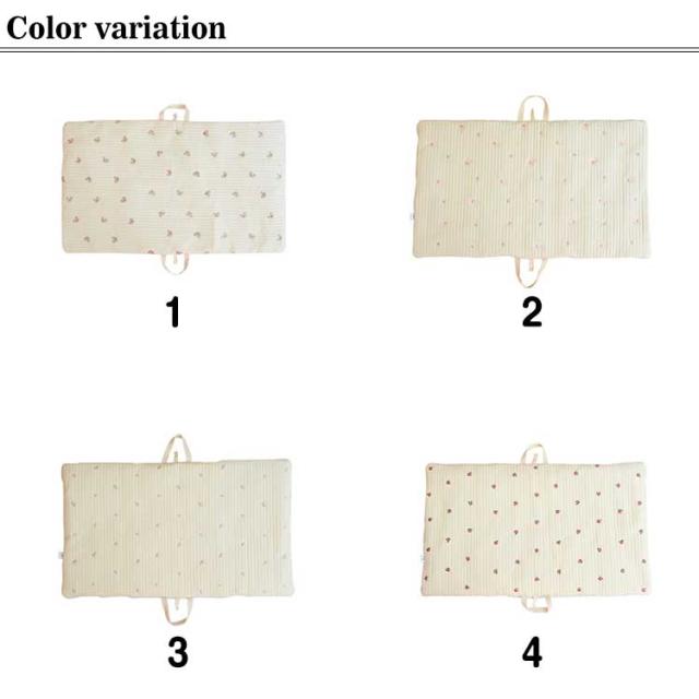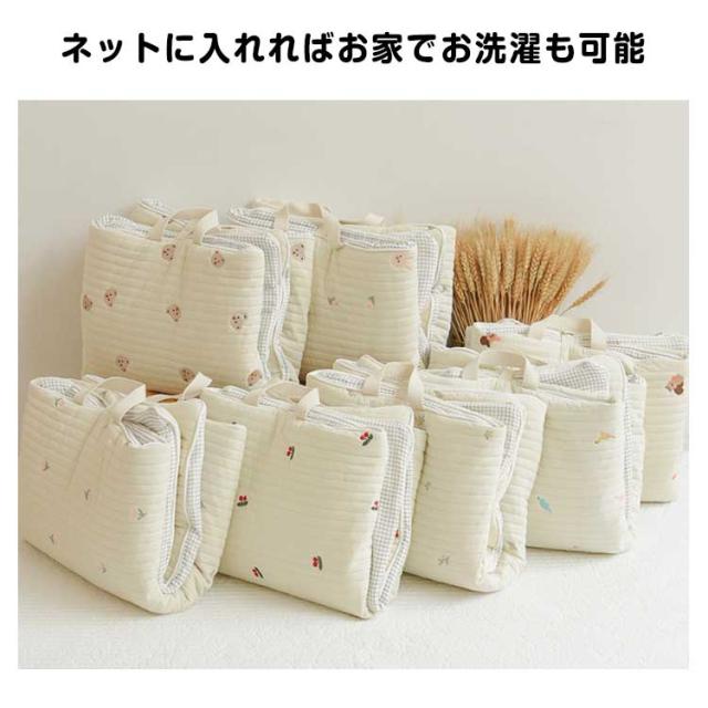 | ナチュラルで可愛いキルティングお昼寝マット 両面コットンで赤ちゃんに安心なやさしい肌触り キルティング生地でふわふわ 折りたたんでコンパクトと取って付き、 持ち運びもできるので外出先への移動も楽々 ネットに入れればお家でお洗濯も可能 | |
