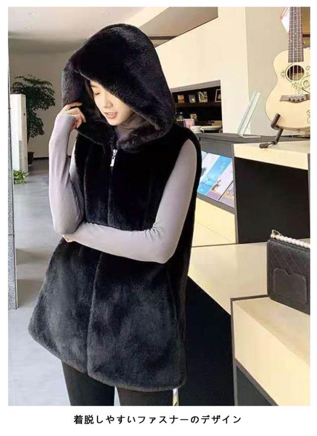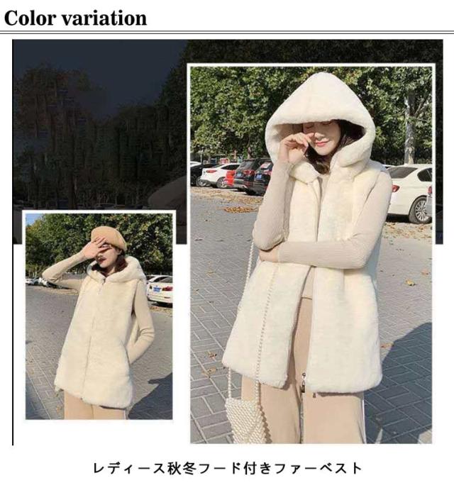 | レディース秋冬フード付きファーベスト ふわふわ素材がとても可愛くて暖かいです。 フード付きのデザインで防寒性が向上 ミドル丈なので体型カバー効果も得られます。 着脱しやすいファスナーのデザイン | |