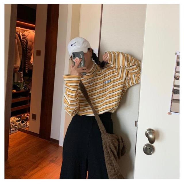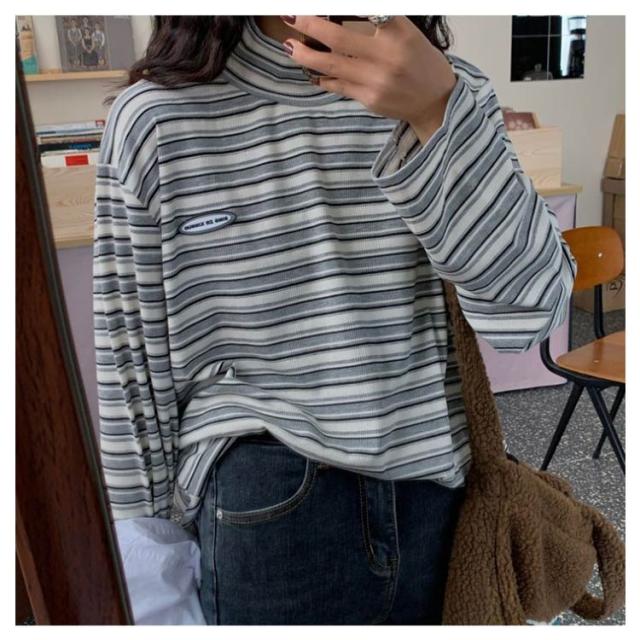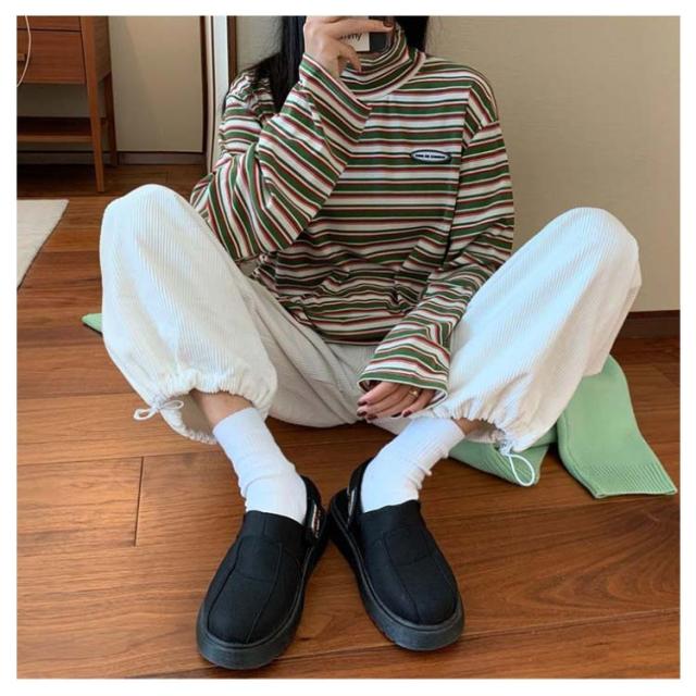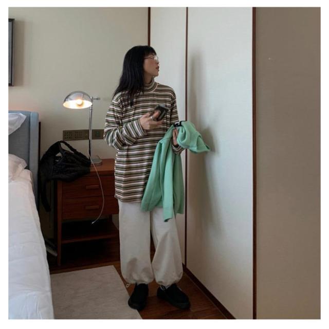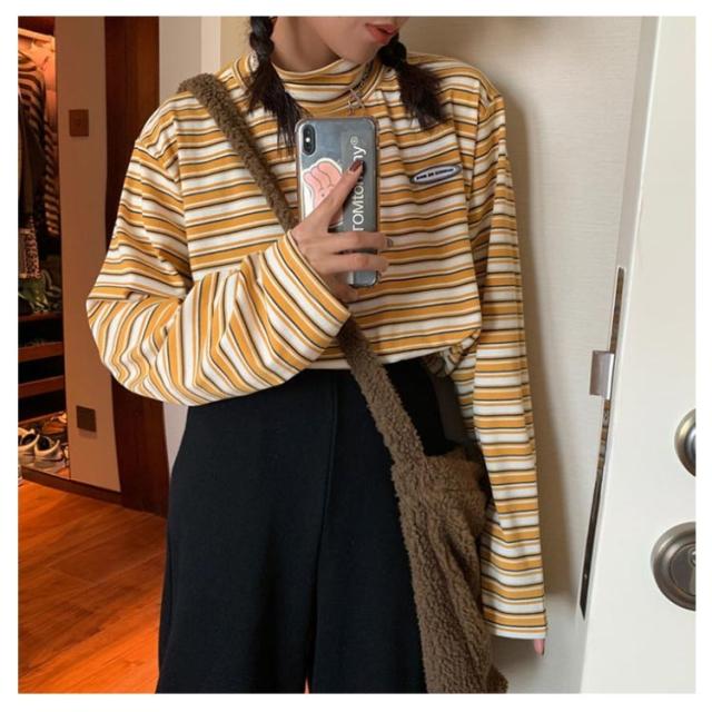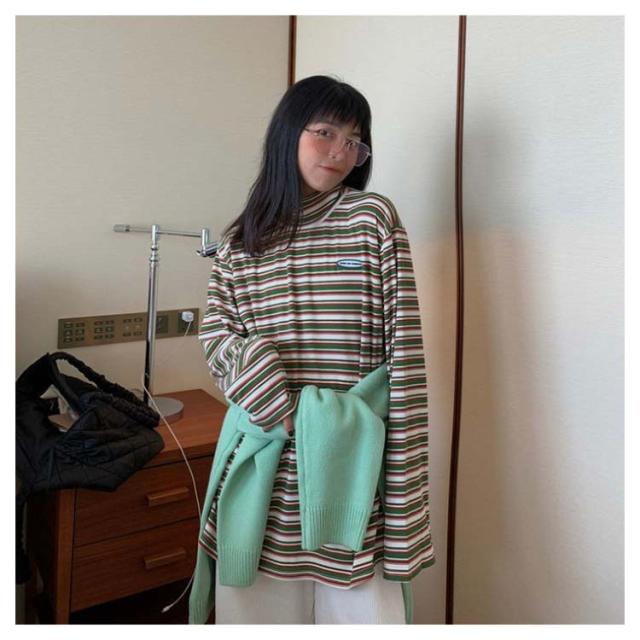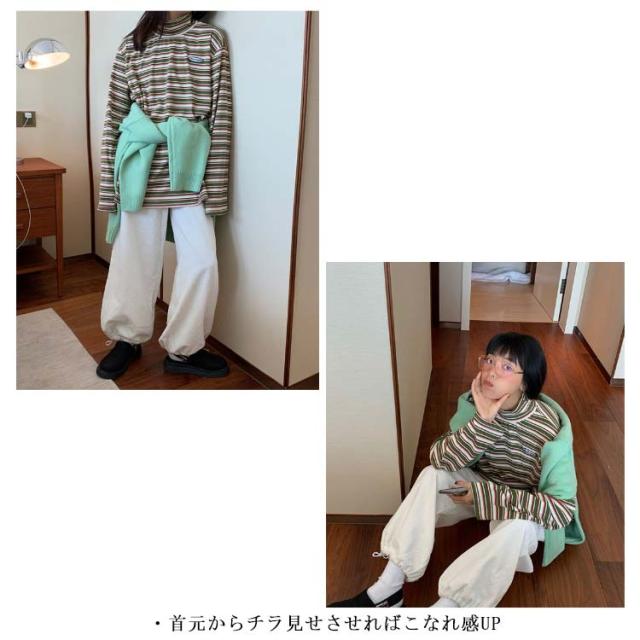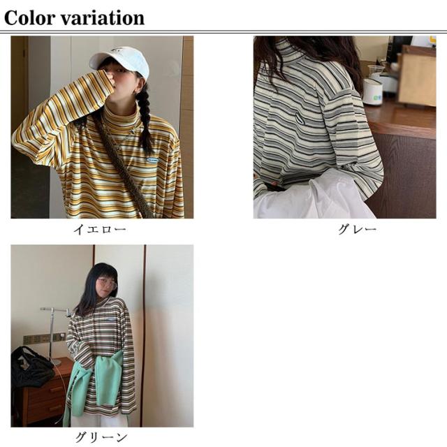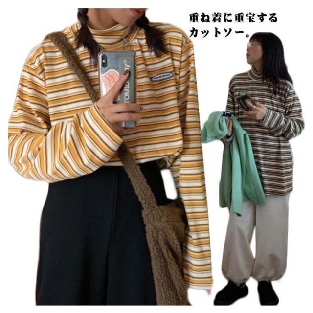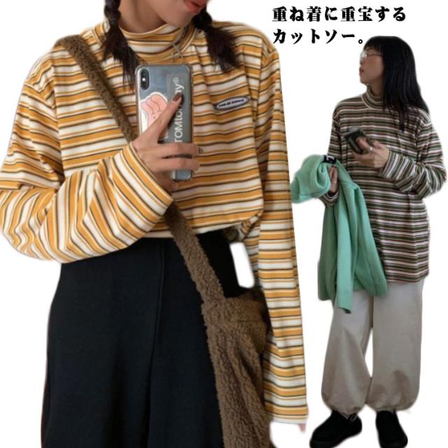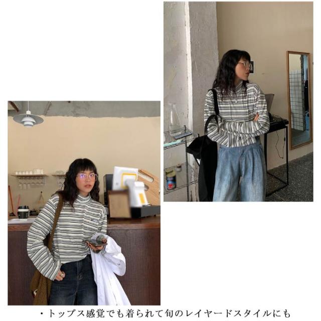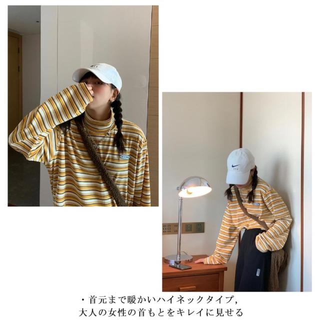 ボーダー カジュアル カットソー 微起毛 ハイネック レディース タートルネック トップス 秋 ロンT 韓国 長袖Tシャツ あったかインナー Tシャツ 着心地 長袖 冬 防寒 インナー インナーシャツ おしゃれ ゆったり 通勤 通学 大きいサイズ 重ね着風