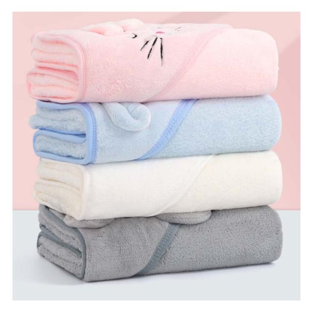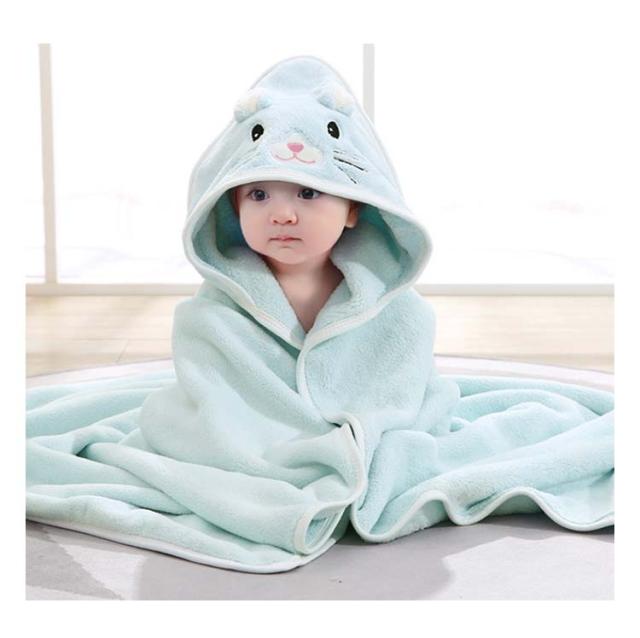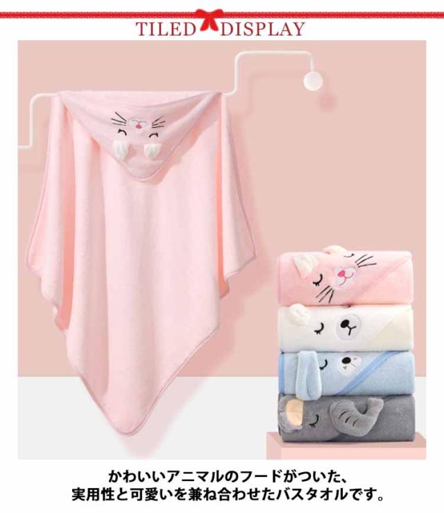 | 【ベビーバスタオル】【80×80cm/105×105cm】【4color】 かわいいアニマルのフードがついた、実用性と可愛いを兼ね合わせたバスタオルです。 フード付きで頭まで全身を包む、髪の毛から身体まで全身を乾かしてくれる★ 吸収性と速乾性にすぐれたマイクロファイバー素材です。 水分をサッと吸い取ってくれるので、お風呂上りにパッと着せて湯冷めを防止します。 お風呂以外でもプールや海など様々な場面でお使いいただけます。 バスタオルとしてはもちろん、タオルケットやおくるみ等、気温差の激しい時期にも1枚羽織れる、1年中通して大活躍! | |
