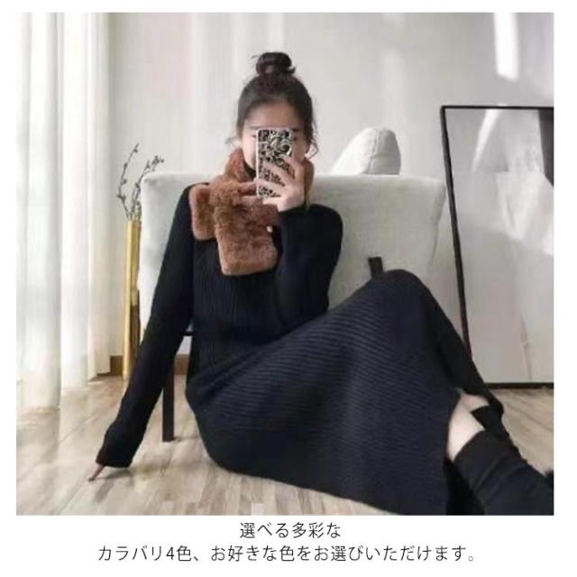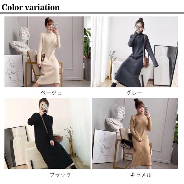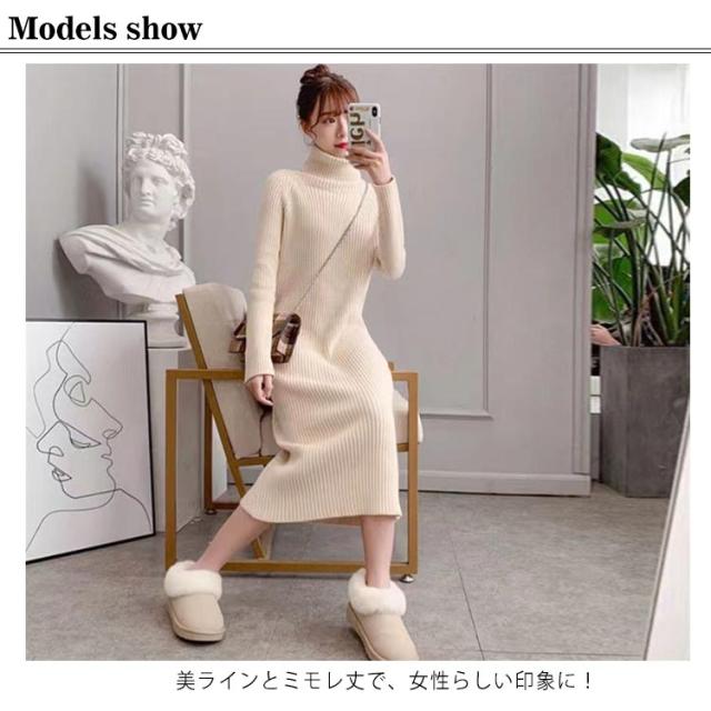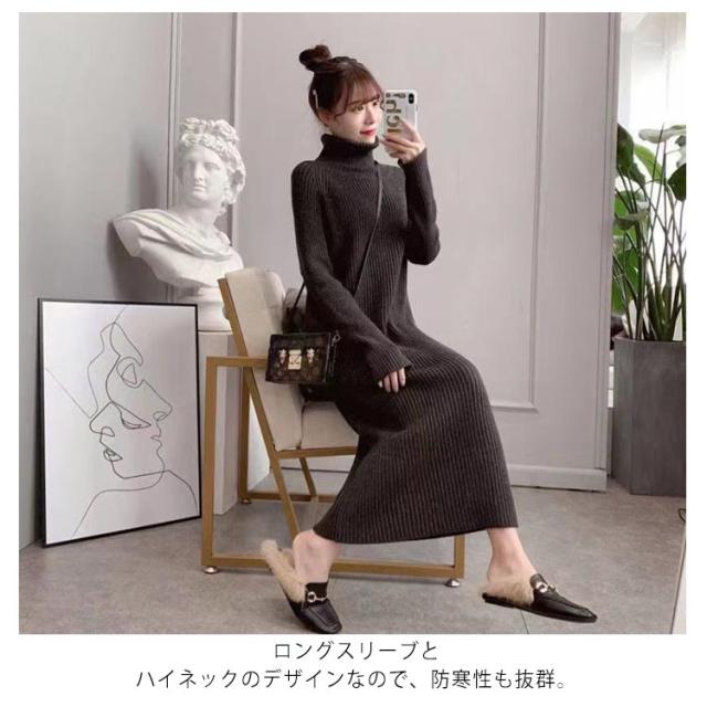 体型カバー 長袖 冬 ハイネック ワンピース レディース ロング 秋 ニットワンピース ミモレ丈 大人 ニットワンピース 秋冬 秋新作 オフィス カジュアル ワンピース お出かけ 上品 シンプル ロング丈