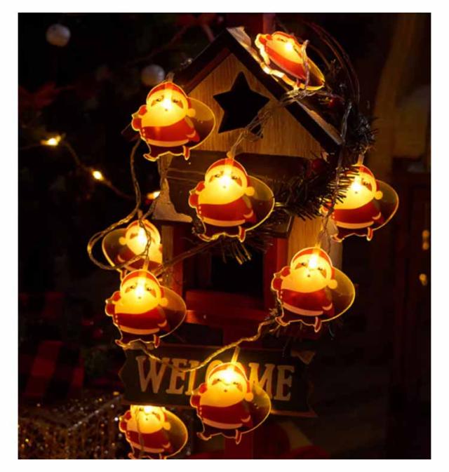 飾り クリスマスツリー ツリーライト 電池式 オーナメント 装飾 点滅 LEDライト クリスマスライト サンタクロース 雪だるま 飾り付け クリスマスツリー ストリングライト カーテンライト Christmas