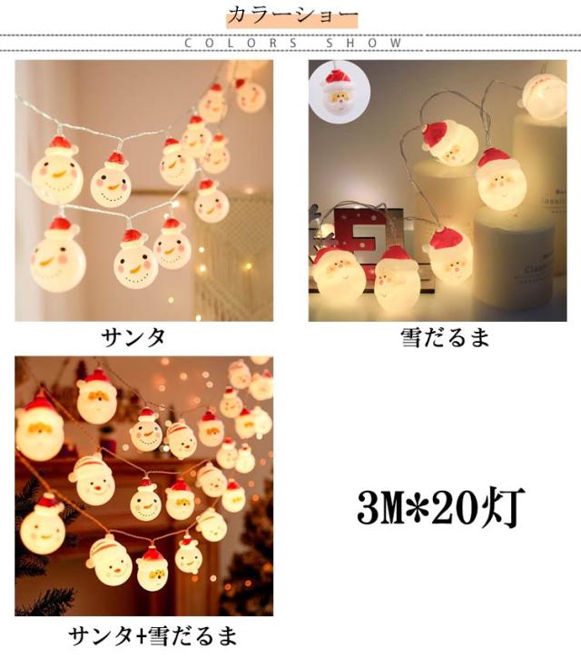 イルミネーション 雪だるま 点滅 LEDライト クリスマスライト 20球 クリスマスランプ 電池式 3M パーディー 電飾 クリスマスツリー用品 サンタクロース クリスマス 室内 デコレーション インテリア用品 庭用