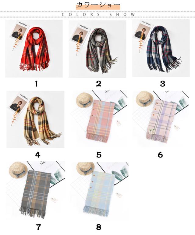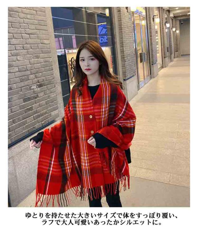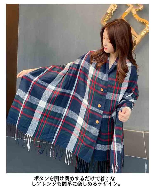 チェック柄 ストール マフラー ショール レディース 羽織り 室内 厚手 オフィス 大判 フリンジ付き 防寒 秋冬 誕生日 マフラー ボタン付き プレゼント クリスマス お洒落