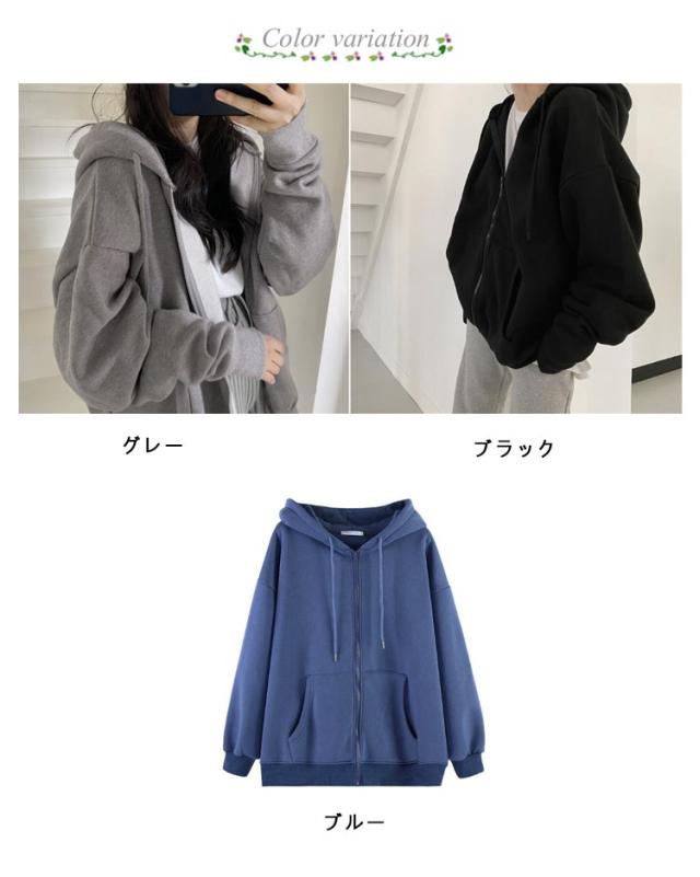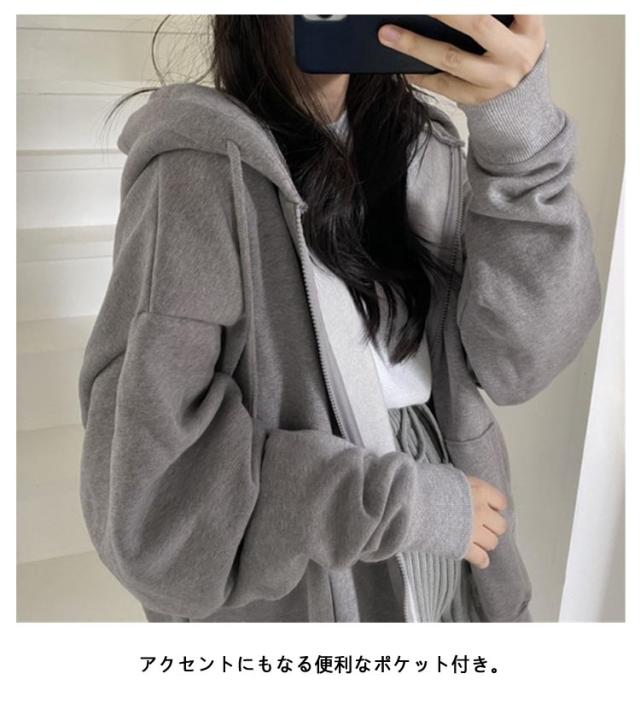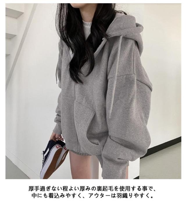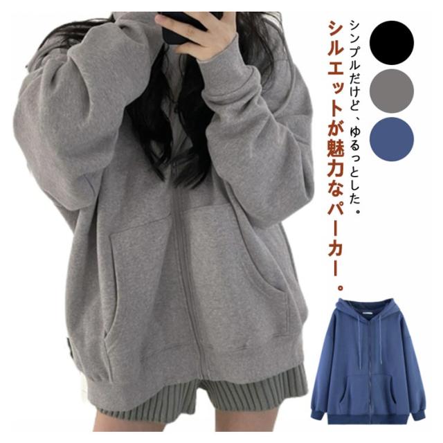 ジップアップパーカー 大きいサイズ パーカー レディース 長袖 カジュアル ジップアップパーカー 保温 防寒 無地 トップス ビッグシルエット フード付き アウター スウェット 羽織