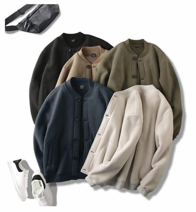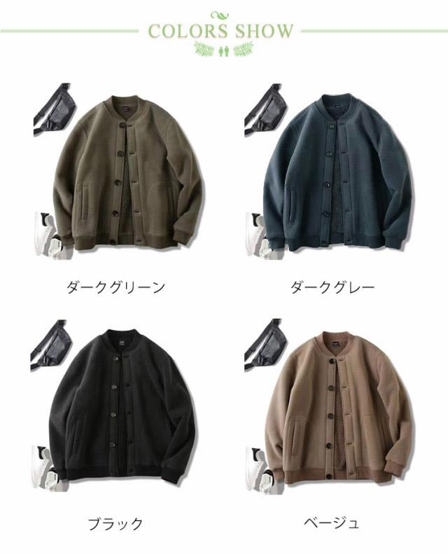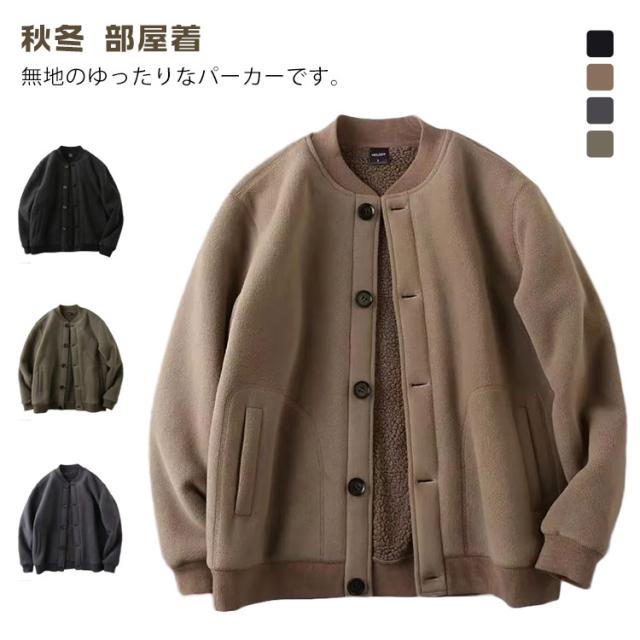 パーカー ジャンパー メンズ ジャケット スタジャン スタジアムジャンパー 裏起毛 保暖 防寒 無地 長袖 前開き トップス ボタン付き ポケット付き ビッグシルエット 大きいサイズ ボタン留め カーディガン 秋冬 部屋着 おしゃれ M L XL 2XL 3XL 送料無料