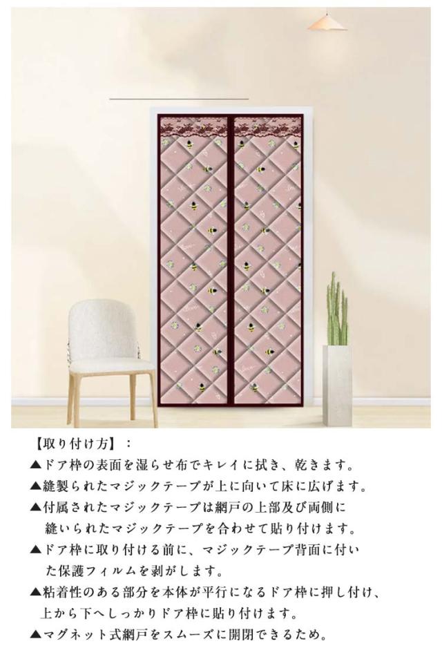 | 真ん中はマグネット式なので、自動的に開閉ことができます。 中綿入りなので、冷風の侵入を防ぎ、部屋の温度も守ります。 冬は暖房効率アップ!間仕切りの保温?防寒ドアカーテン。 マジックテープ付き、簡単に取り付けることができます。 面倒な工事が不要、女性の方でも簡単に操作できます。 【取り付け方】: ▲ドア枠の表面を湿らせ布でキレイに拭き、乾きます。 ▲縫製られたマジックテープが上に向いて床に広げます。 ▲付属されたマジックテープは網戸の上部及び両側に縫いられたマジックテープを合わせて貼り付けます。 ▲ドア枠に取り付ける前に、マジックテープ背面に付いた保護フィルムを剥がします。 ▲粘着性のある部分を本体が平行になるドア枠に押し付け、上から下へしっかりドア枠に貼り付けます。 ▲マグネット式網戸をスムーズに開閉できるため。 | |