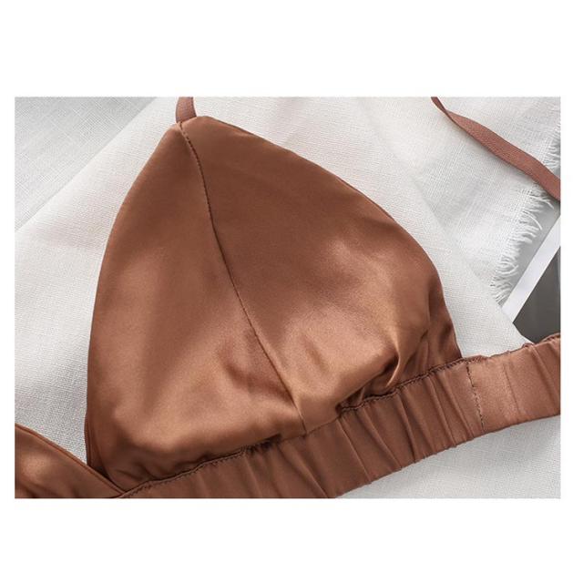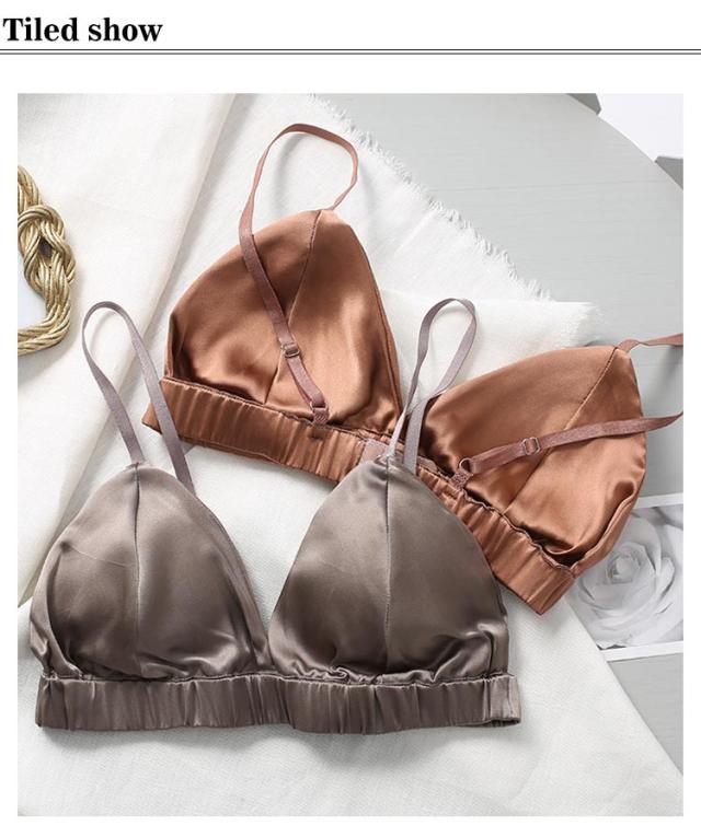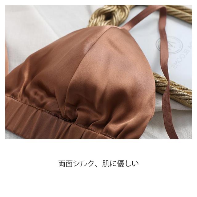 シルクストレッチサテン ブラレット シンプル カシュクール ブラトップ ブラジャー シルクストレッチサテン パッド 無地 三角ブラ 送料無料
