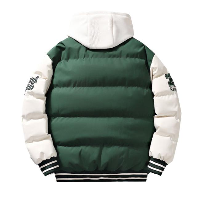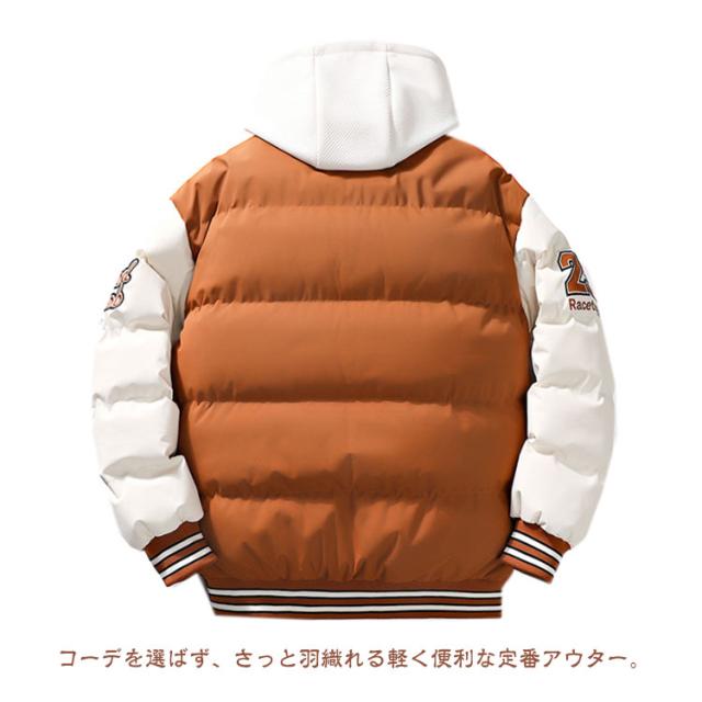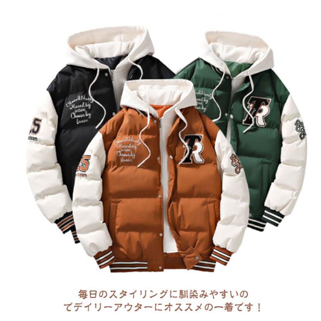 フェイクレイヤード風 コート メンズ スタジアムジャケット スタジャン風 暖かい ショート丈 フェイクレイヤード風 コート フード付き コート 中綿ジャケット 秋冬 コート 中綿コート ミリタリーコート 防寒コート 中綿アウター レイヤード風 通勤 通学 軽量 冬 アウター