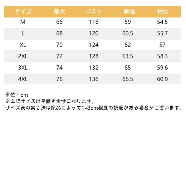 | サイズ | M L XL 2XL 3XL 4XL |